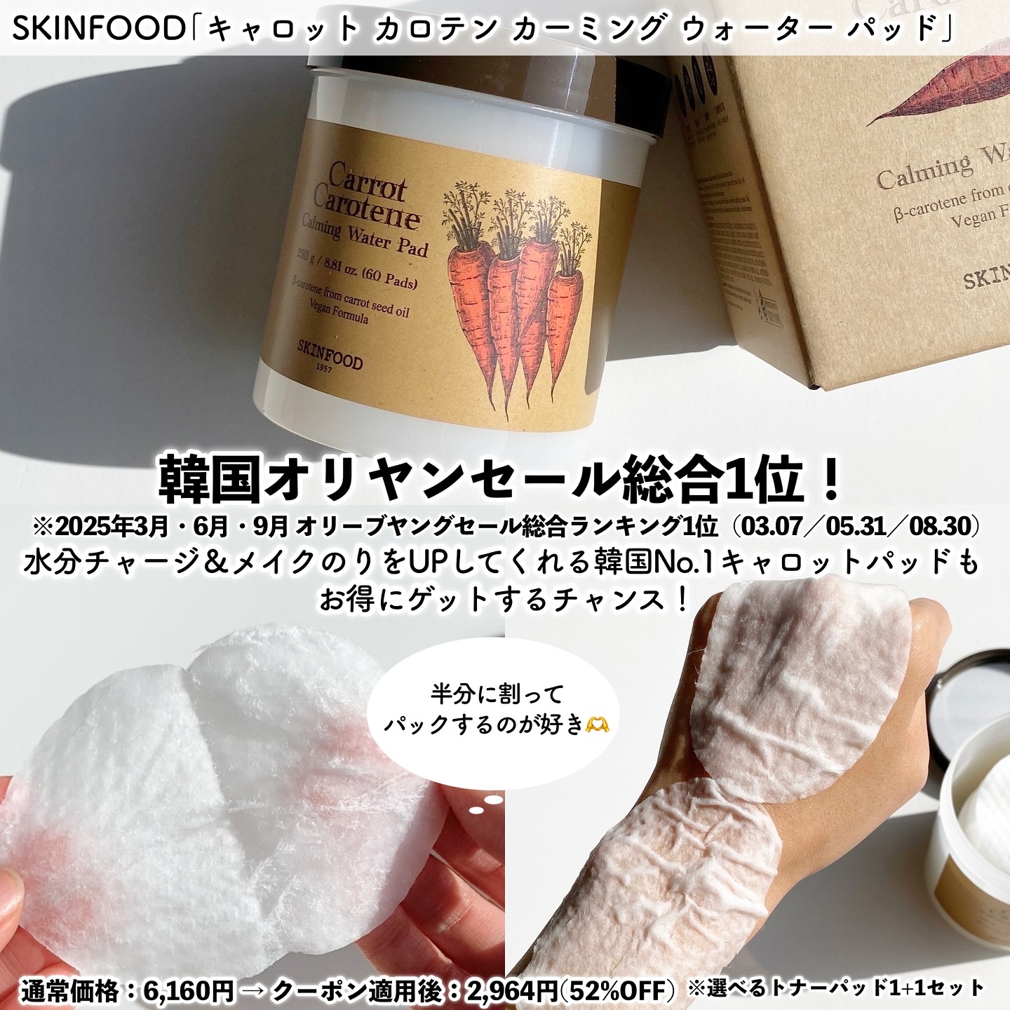 SKINFOOD キャロットカロテン カーミングウォーターパッド | 3,080円 |