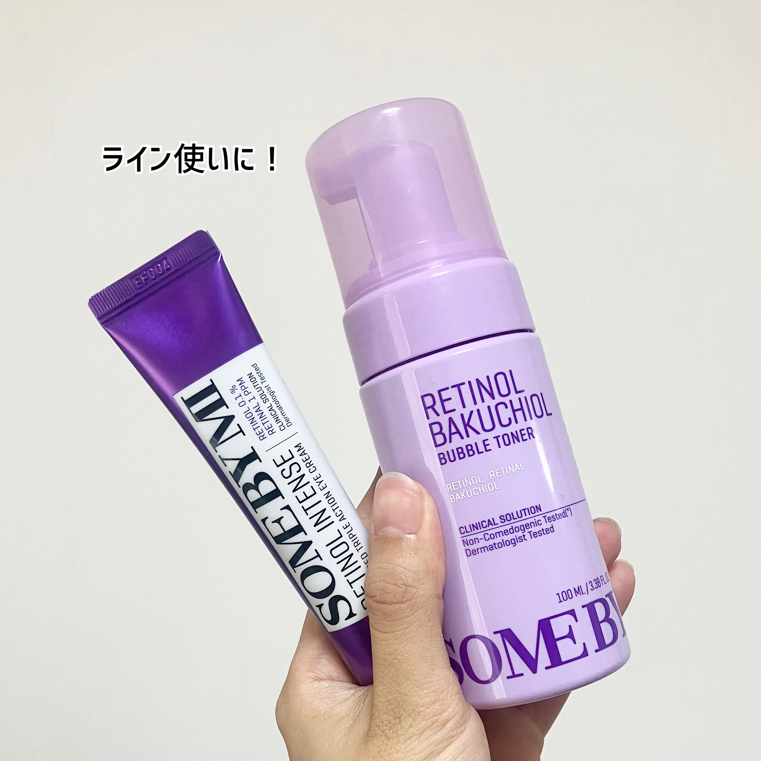 バクチオール×レチノールで様々な肌悩みケア🫧💜SOMEBYMIレチノールバクチオールバブルトナーレチノール×レチナール×バクチオール配合🫧やさしい使用感だけど肌悩みにしっかりアプローチしてくれる◎きめ細かい泡で馴染ませたあとはしっかり水分補給...