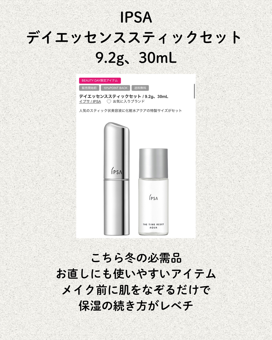 IPSA ザ・タイムR デイエッセンススティックe | 3,410円 |