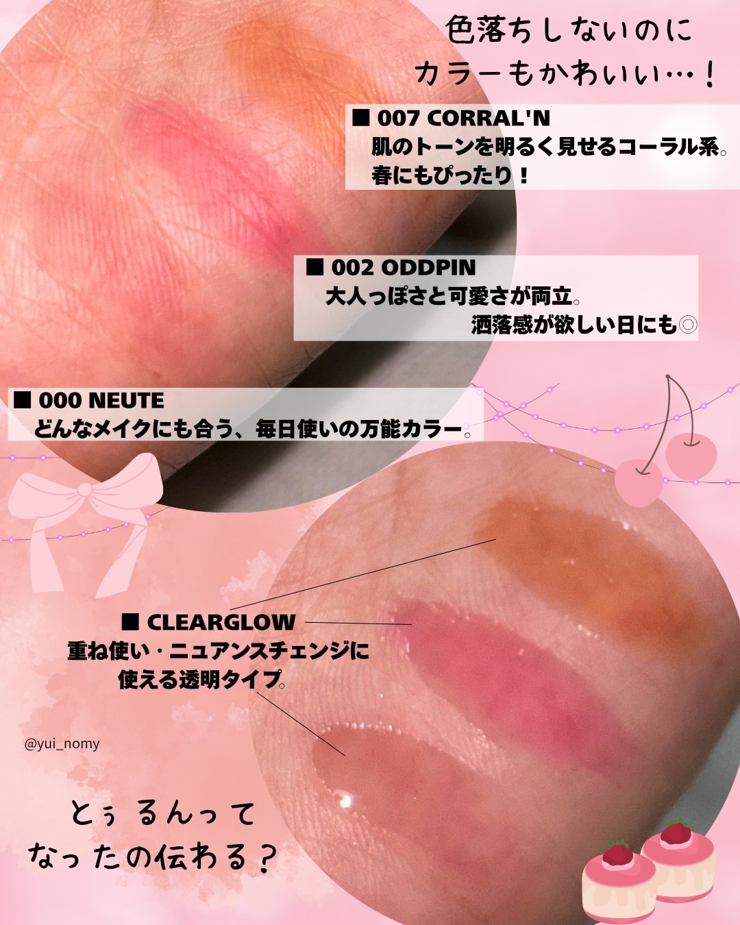 .Oiad.オイド@oiad_jpリップティーク000.NEUTE002.ODDPIN006.WINTTOCLEARGLOW(LIPGLOWOIL)こちら、韓国で売り切れ続出した大人気リップアイテム💄塗って15分くらい放置して完全に乾いたらペ...