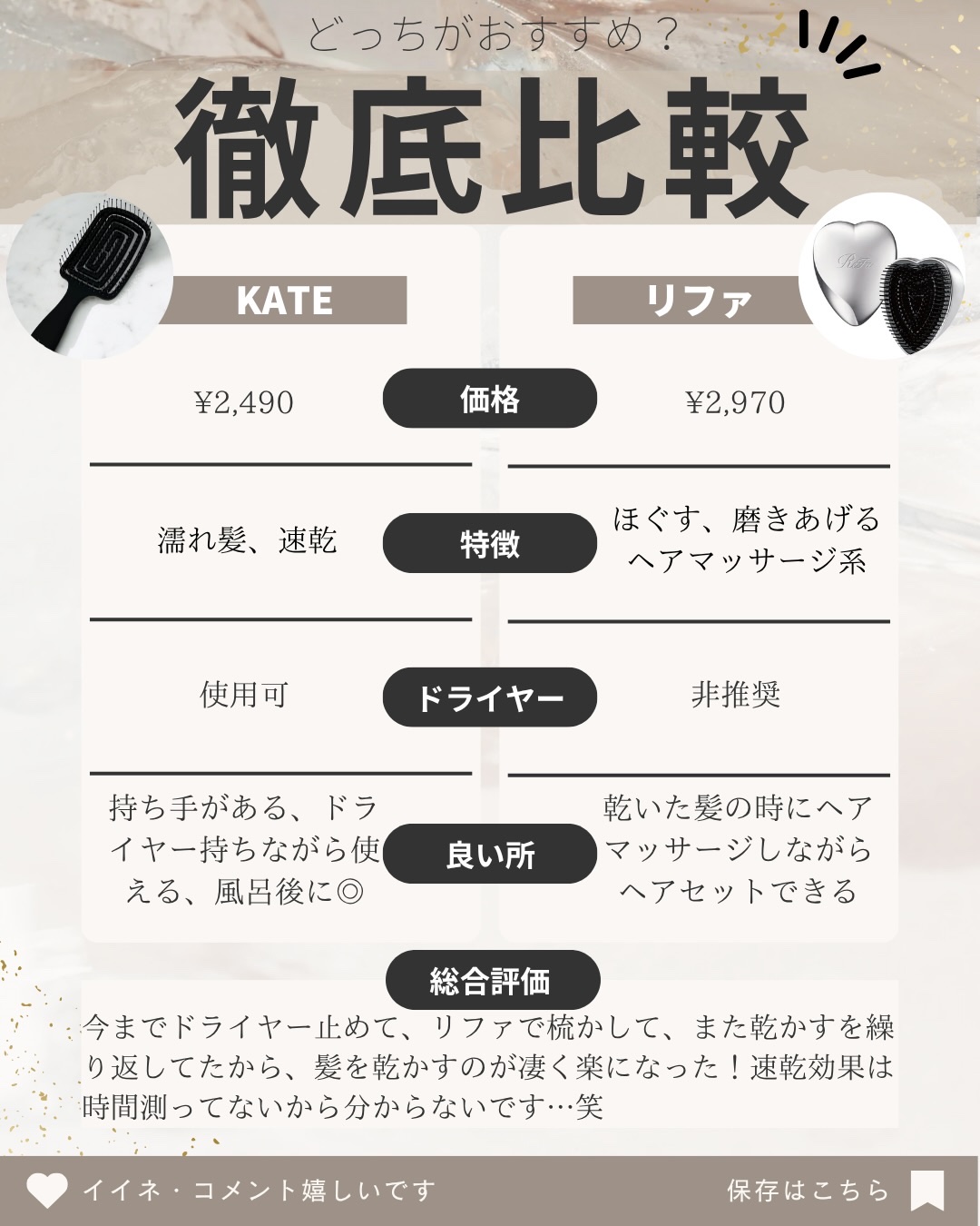 | 美容グッズ・美容家電ランキング第65位 | 濡れ髪用!お風呂に持ち込んだり、お風呂上がりの ブロー前に、、とにかく使える🥺 | 詳細を見る | |