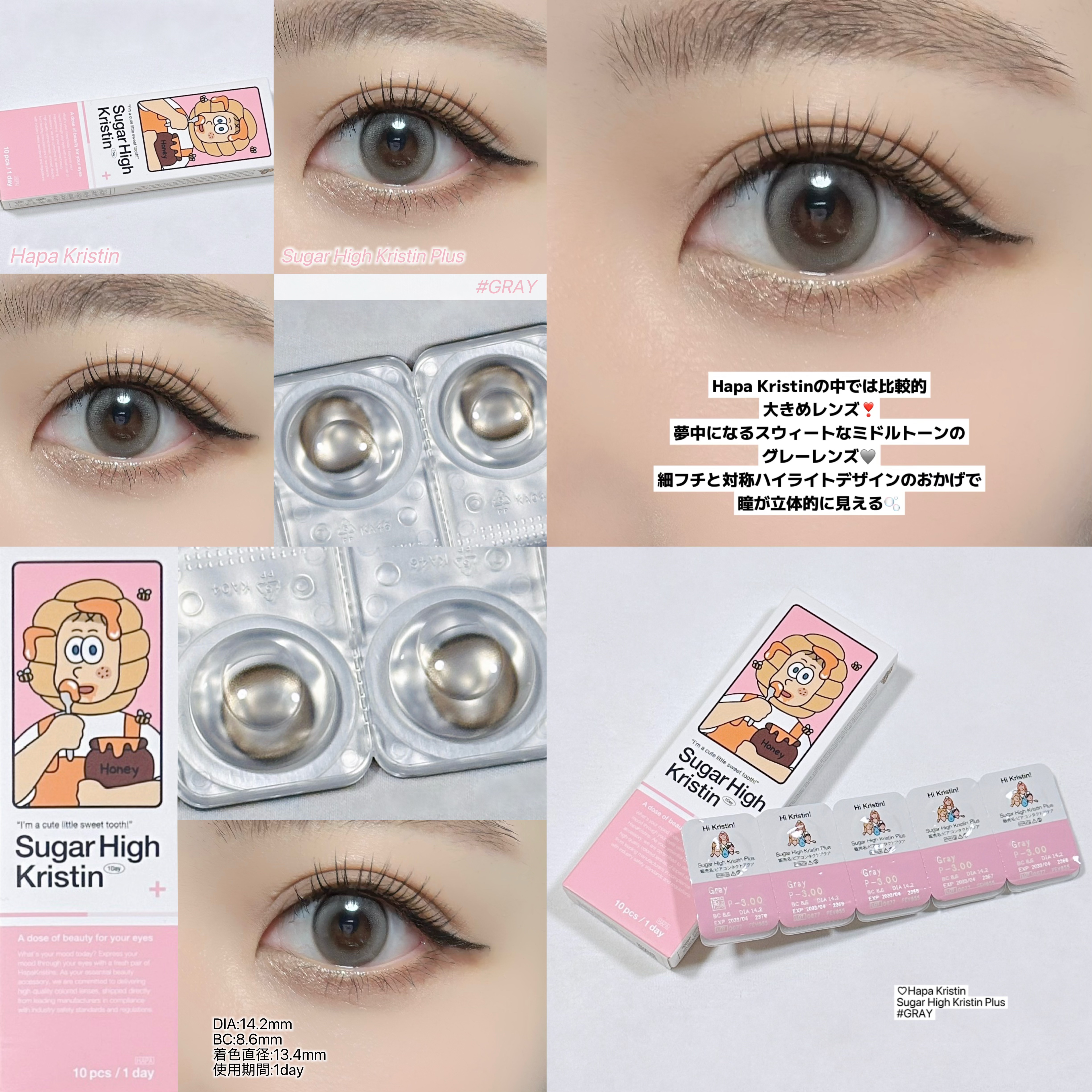 HapakristinTweedKristin1dayMAUVEGRAYグレーカラコンなのかと思いきや紫感のあるナチュラルカラコンです!着色直径は大きめの13.4mmですが体感だともう少し大きめに感じました!ナチュラルなのに透明感が出て紫が大...