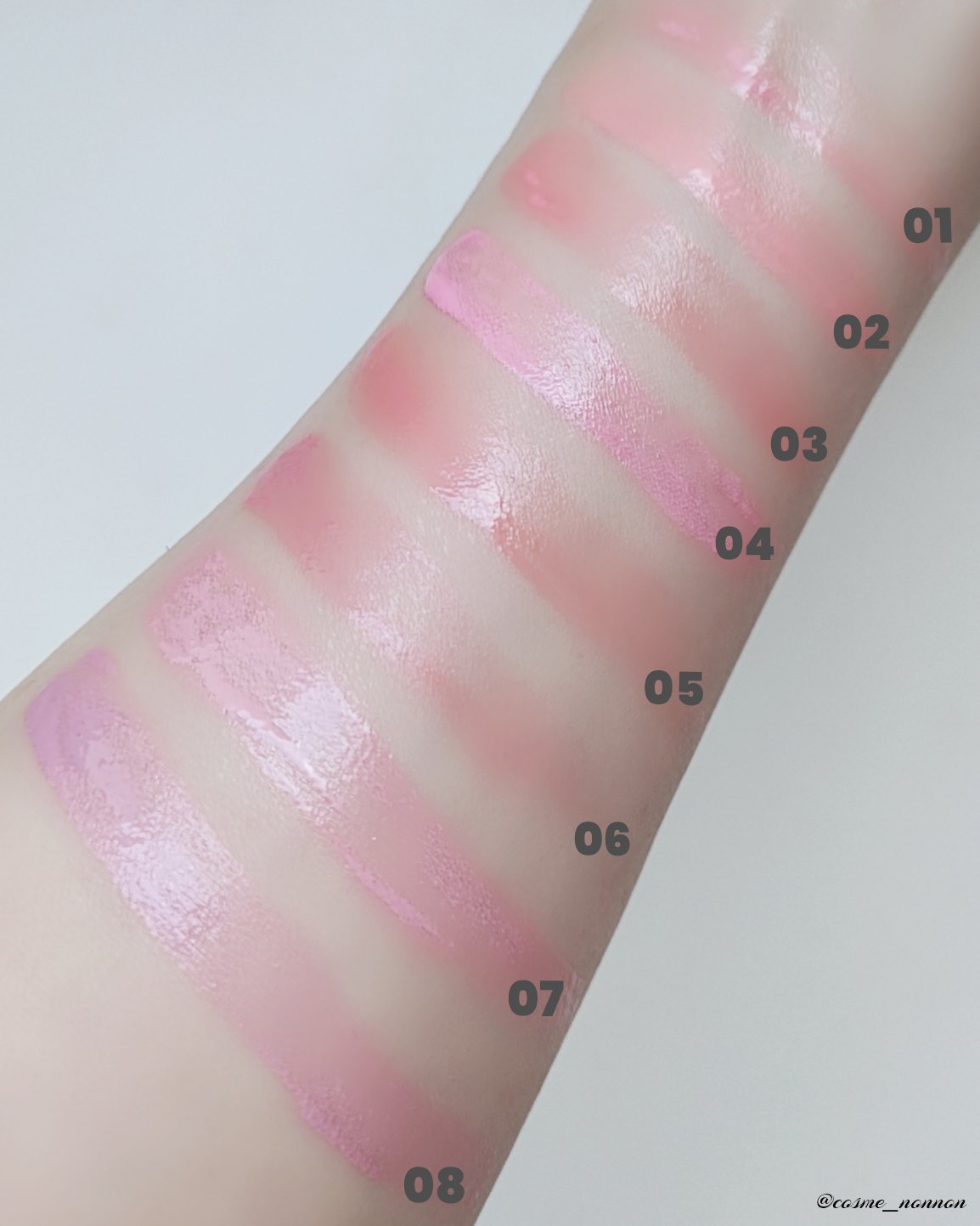 ✔ひと塗りで見たまま発色* 52%エッセンシャル成分配合で高保湿* にじみにくい* 塗布してから1分後に薄膜が形成されて時間が経つほど鮮やかな発色* 本来の唇のように自然な仕上がり* 飲食してもカラーが残る* レミユのデューイフロウティントはパケがとにかくCUTEで持っているだけで気分が上ります⤴🩷 ピンクブロッサムエディションはブルベ向きさんのカラーかな!?と思いましたが実際に塗ってみると3色とも顔から浮くこともなくとても可愛いぃ春爛漫カラーです🌸 52%エッセンシャル成分配合なので乾燥することがなく1日中うるつやな唇を演出してくれました🙆 06は白みピンクです 07、08も血色感と華やかさがあって可愛いぃです🐰 今の季節にぴったりなティントです🩷