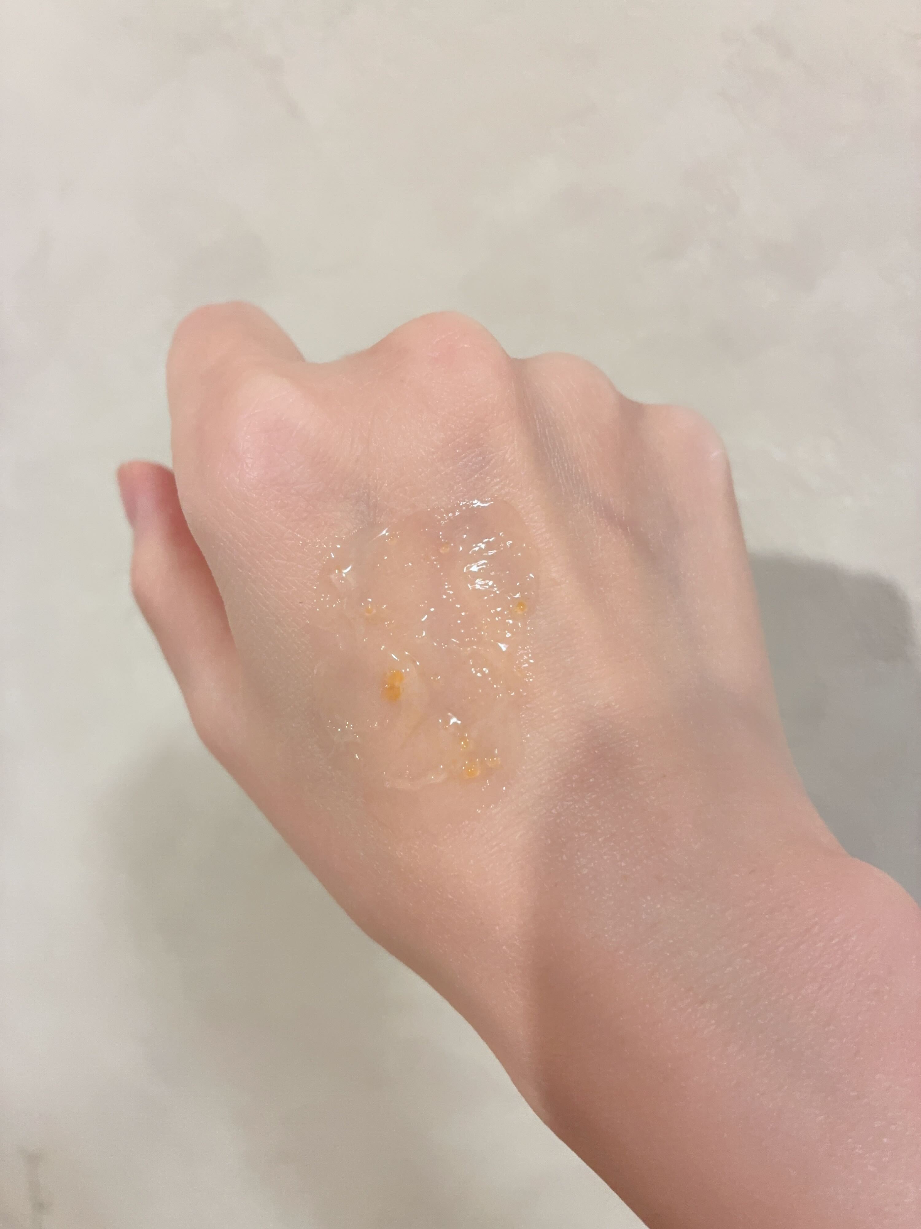 無色透明のややトロミのあるテクスチャーと、柑橘orハーブっぽい爽やかな香りで個人的に好み。 べたつきもそれほどなく、数分でスーッと浸透していくのが分かります! 少量でもよく伸びふっくらもちもちになります。 残った液は手に塗り込んで、乾燥&赤ぎれ防止に。