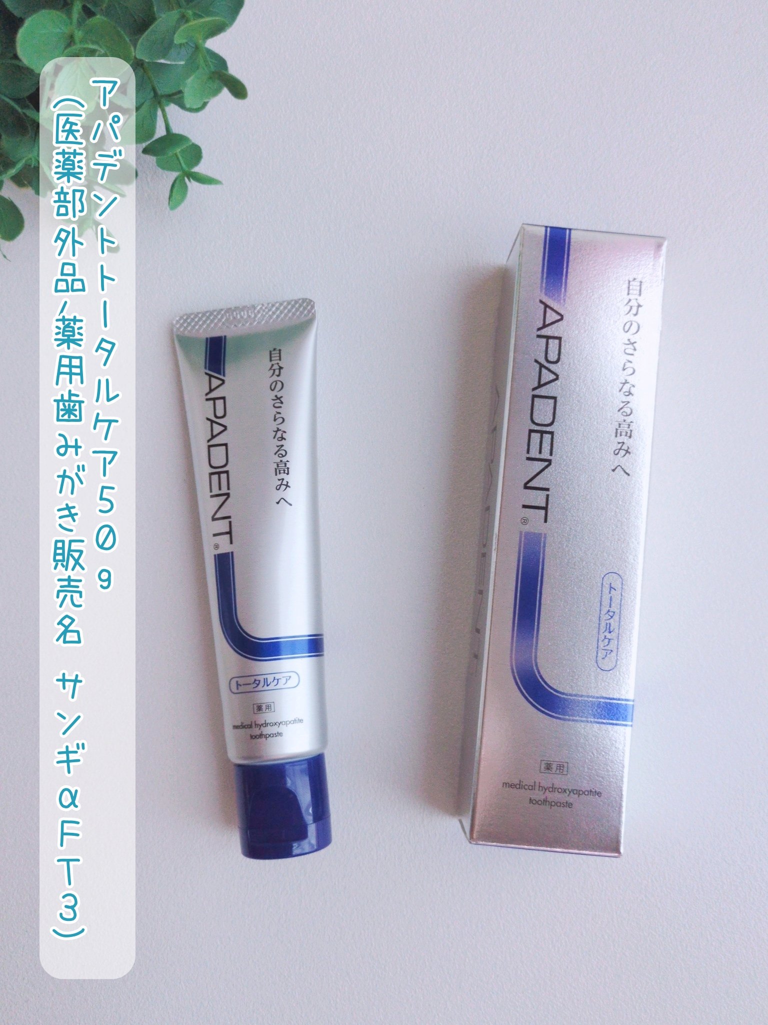 アパデントトータルケア50g(医薬部外品/薬用歯みがき 販売名:サンギαFT3)NASAのアイデアをヒントに生まれた革新的※1オーラルケア。※1世界初・薬用ハイドロキシアパタイト配合歯みがき剤ブランドむし歯・歯周病※2・口臭を予防トータルサポ...