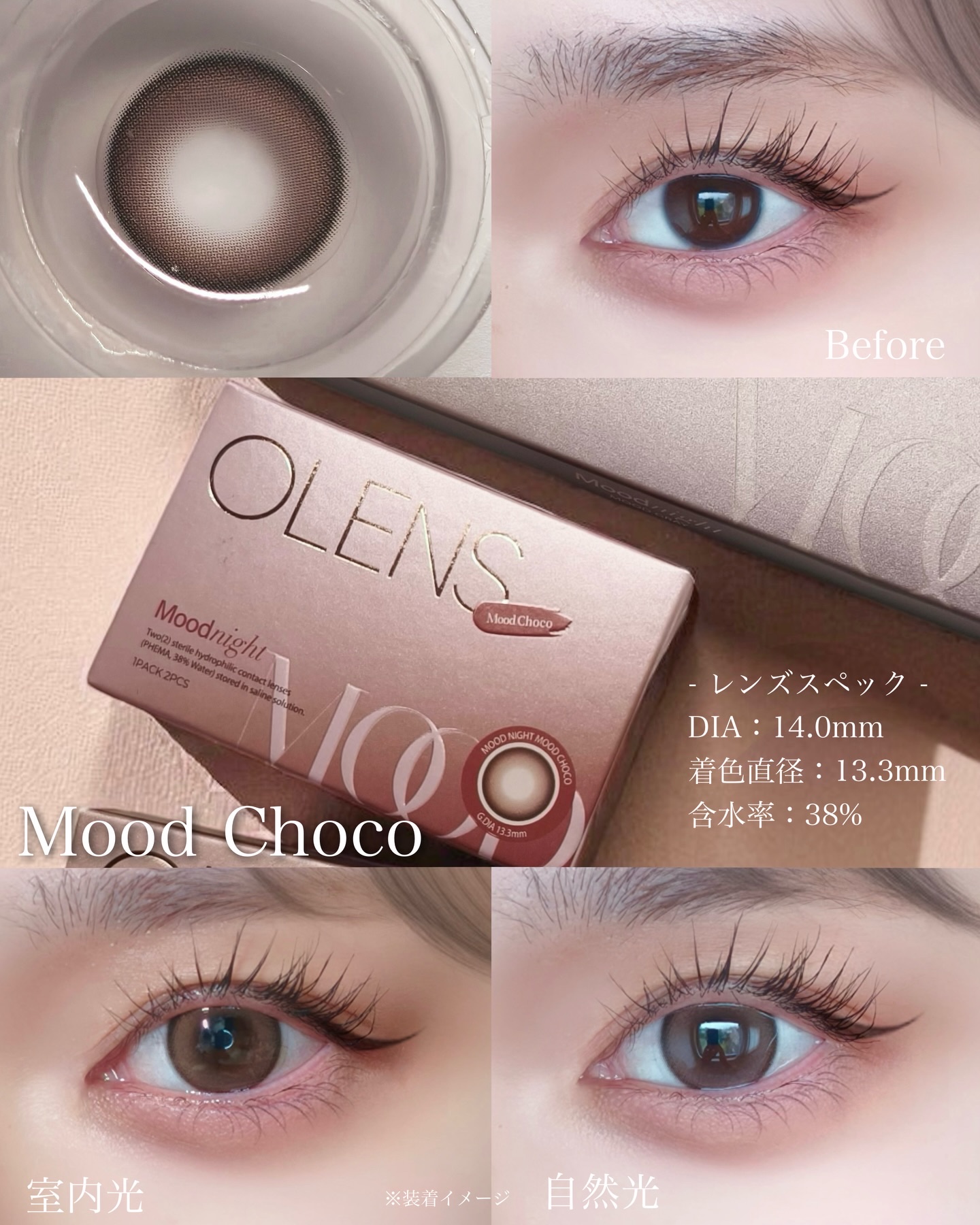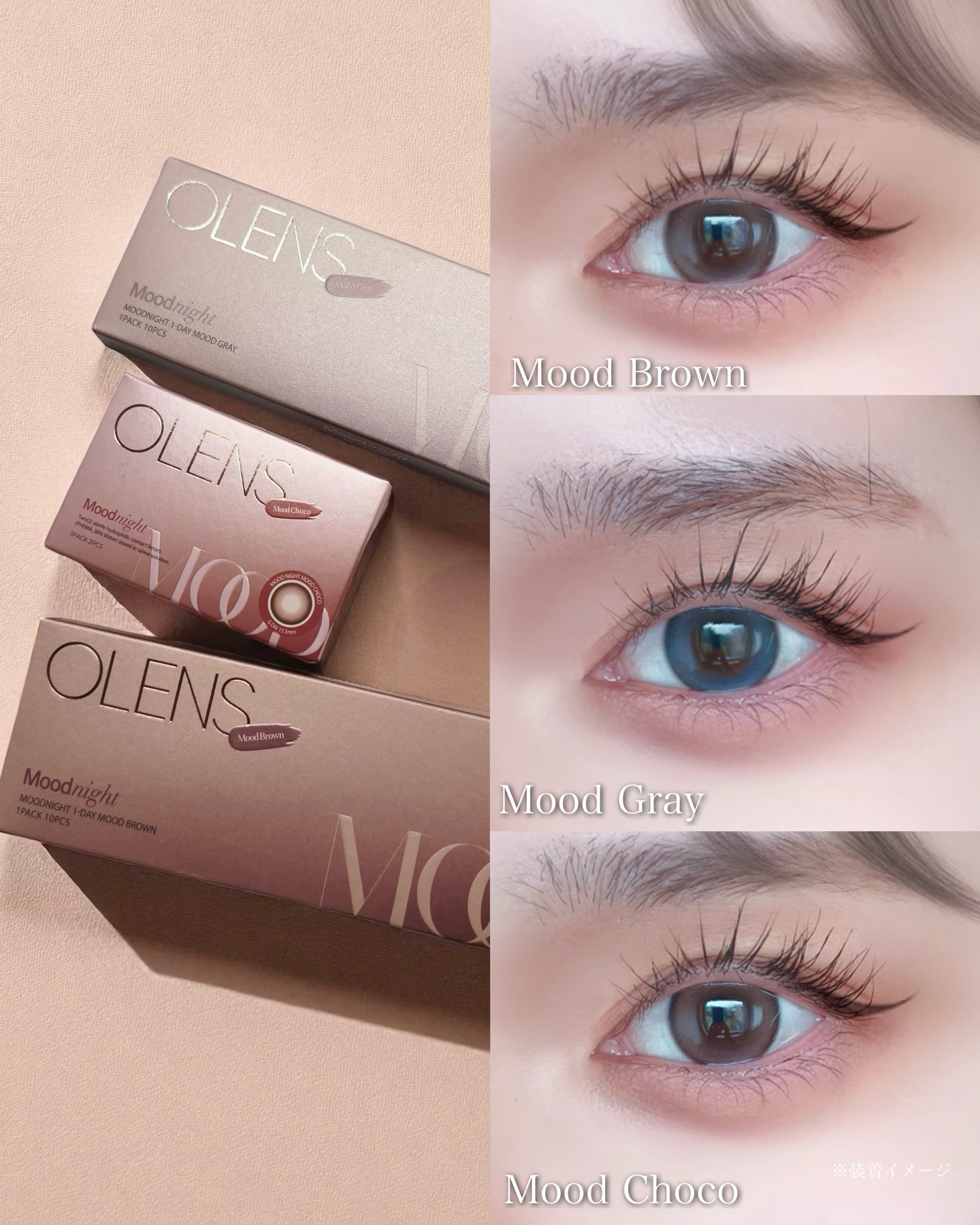 - 韓国カラコン業界の話題のブランド『OLENS(オーレンズ)』の日本正式承認商品シリーズ。 世界中から注目を浴びるグループ「NewJeans (ニュージーンズ)」がイメージモデル。 OLENSから待望の新シリーズ「Moodnight(ムードナイト)」が新発売しました! 透明感と儚げな印象を与えるアッシュカラーで、グラデーションフチなので瞳に奥行きを与え大人っぽい目元を演出。 自然に馴染む13.3mmの着色直径でほのかに瞳の印象を変える裸眼風なナチュラルカラコンです。 シーンを選ばず誰でも使いやすいのでナチュラルカラコン好きにお勧めのシリーズです! ■OLENS Moodnight(オーレンズムードナイト) ・枚数:1箱10枚入り ・カラー :全2色 ■使い方 コンタクトレンズは高度管理医療機器です。必ず眼科医の処方に従って購入してください。 ■使用上の留意事項 コンタクトレンズは高度管理医療機器です。眼科医の指導に従い装用期間を厳守し、正しくお使いください。眼の定期検査を必ず受けてください。添付文書を必ず読み、取扱方法、装用時間を守って正しくお使いください。少しでも異常を感じたら、直ちに眼科医の検査を受けてください。