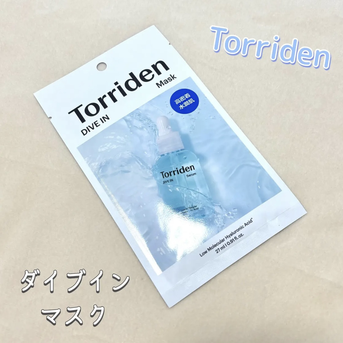 Torridenのダイブイン マスクです! なんと1パックに27mlも美容液が入ってる!!美容液約1本分ってすごすぎる😮 乾燥する今の時期はTorridenのダイブインマスクを使ってなんとか乗り切りましょう!