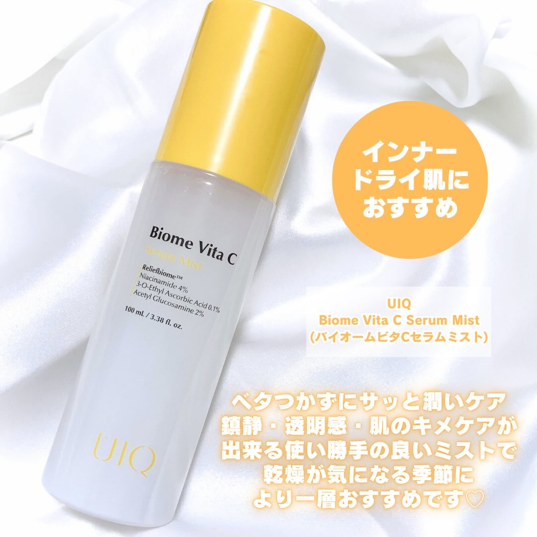 𓆸UIQBiomeVitaCSerumMist(バイオームビタCセラムミスト)爽やかに使えるジェルタイプのミストˊ˗微細な霧吹き状ミストでお肌に優しくフィットし、肌の鎮静効果により敏感な肌を素早く鎮静してくれるのでインナードライ肌にもオススメ...