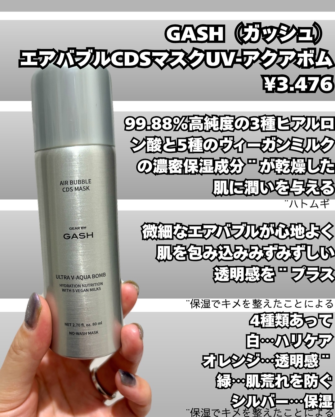 \✨【泡マスク】✨/こんばんは🐰なぎです!↓そのほかの投稿を見るはこちら↓@nagicosmeふわっ!じゅわっ!新感覚✨泡が弾けてうるおう《GASHエアバブルCDSマスクUV-アクアボム》💧乾燥が気になる季節も、ぷるツヤ肌をキープできるの最高...