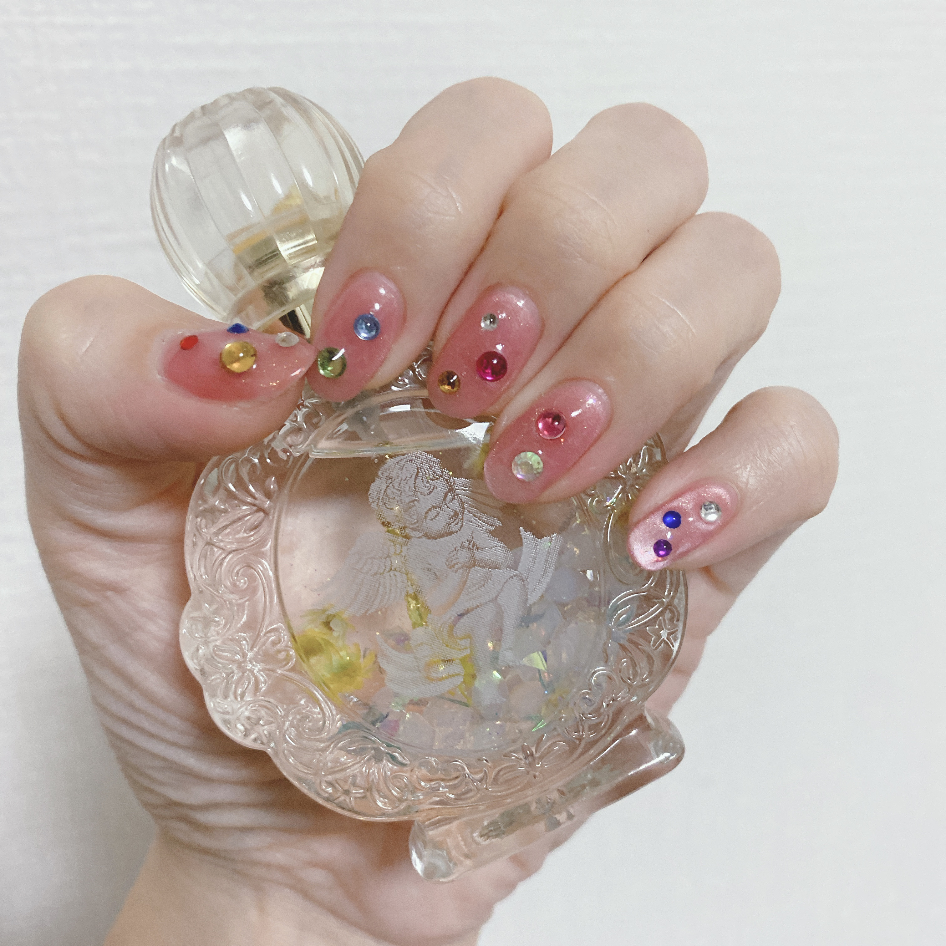 📷ネイル備忘録 どちゃくそ簡単、ただパーツ置いただけネイル ➶ ➷ ➸ ➹ ➺ ➻ ➼ ➽ ♡ まるパーツカラフルに置いただけ✌️ ♡ 下はマグネットだけど適当に輝かせた✨ ♡ ぱっとみ派手だけどそんなに時間かからなかった! ➶ ➷ ➸ ➹ ➺ ➻ ➼ ➽ デザインいつも悩んでめんどいので パーツ置くだけの簡単デザインを真似っこ! 同僚にお店でやったみたいと褒められた〜🫶 オフもピールオフだから簡単。 ピールオフベースぬって、適当にマグあてて、 パーツは色被らないように配置、 トップ塗って完了👌 お手軽にできて セボンスターみたいでかわいくできて満足です💓 #セルフジェルネイル