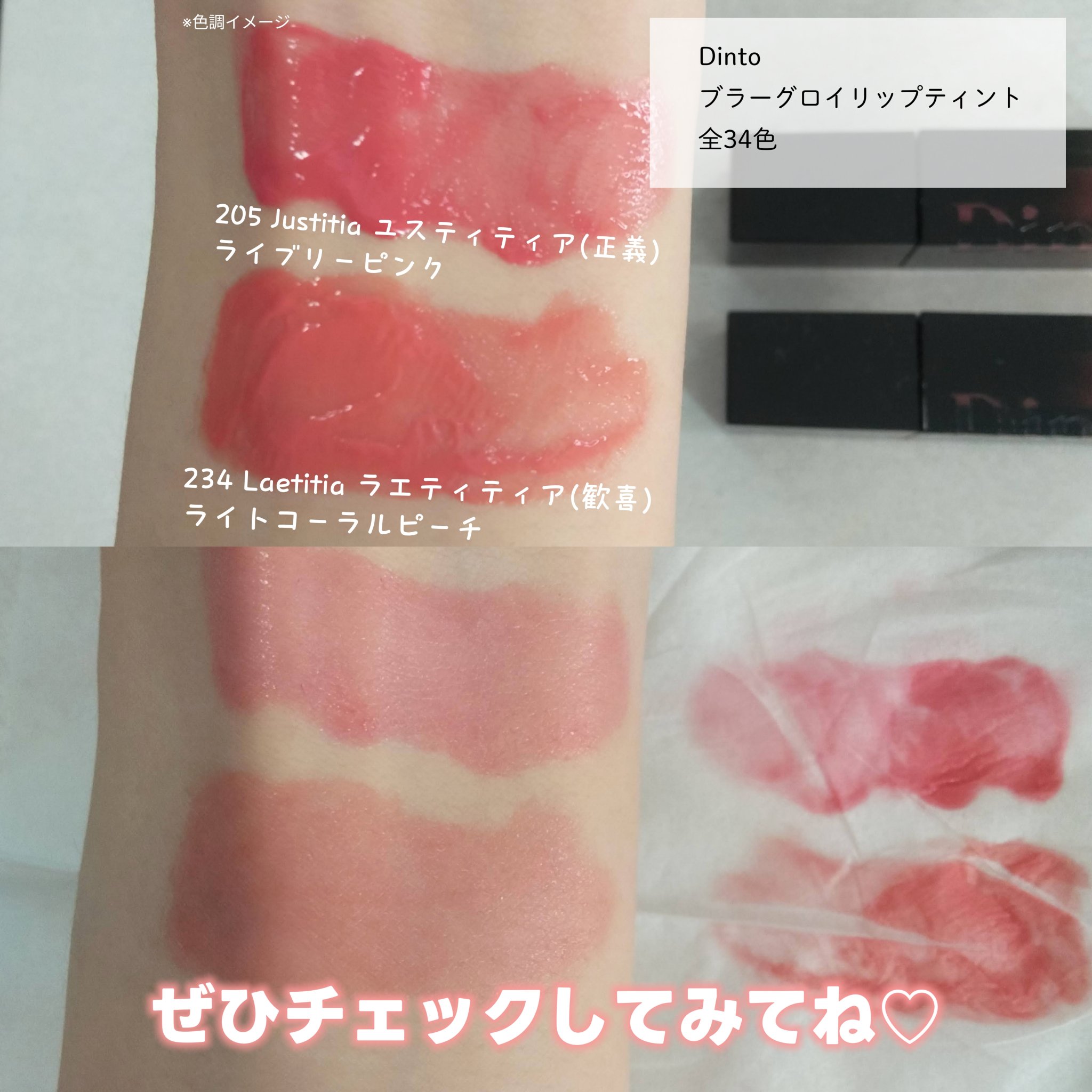 \Dintoティント/ちゅるん×ピュア感、ユスティティアの魔法Dintoの人気ティントシリーズから、205ユスティティアを愛用中💄✨実際に塗ってみると明るめのちゅるんピンクカラー💗とにかくテクスチャーが軽くて、スルスルとムラなく伸びてくれるの...