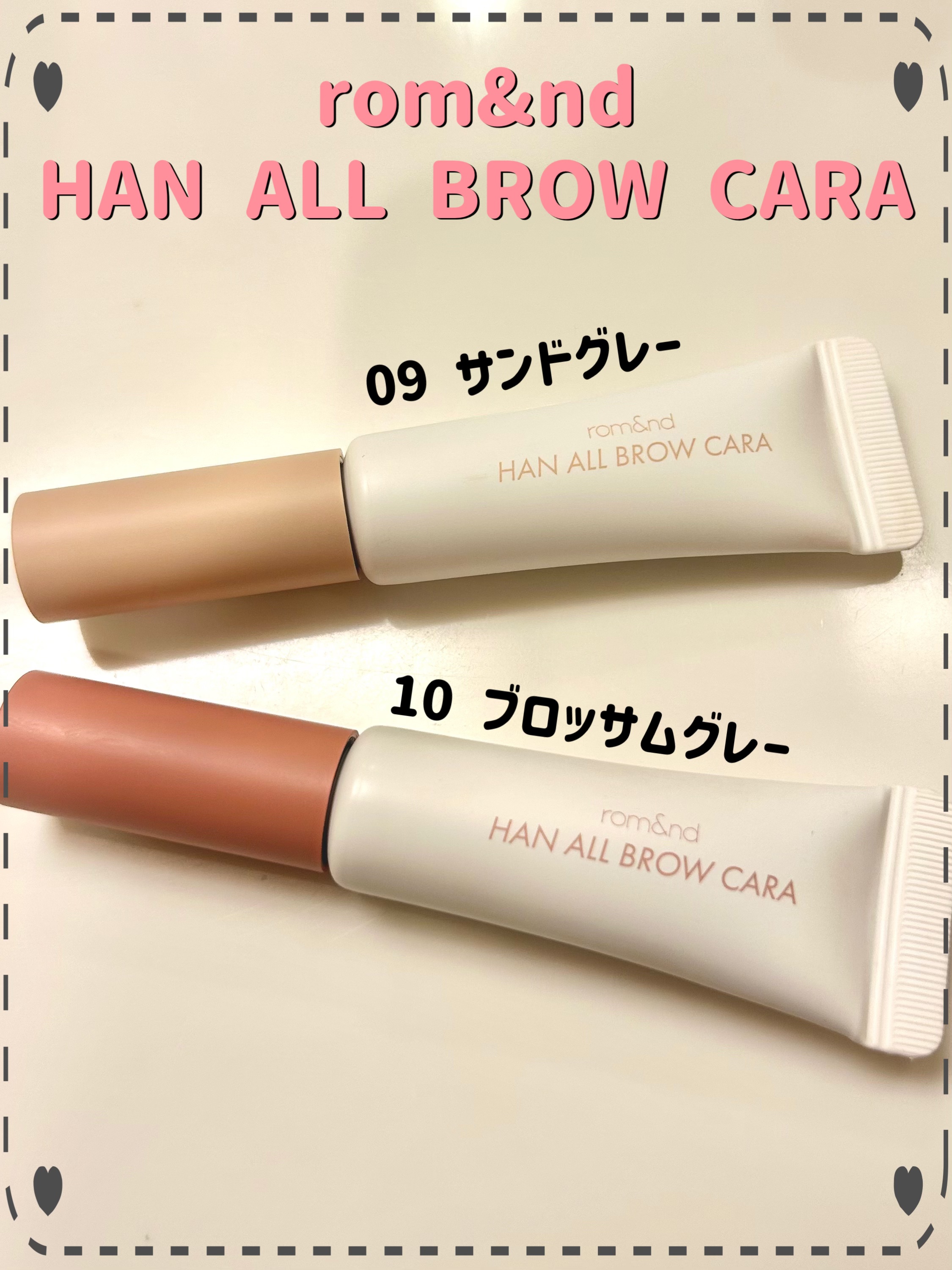 【#rom&nd/#ハンオールブロウカラ】09.サンドグレーほぼコンシーラーのような色味の眉マスカラ👀自眉毛の黒さを抑えてくれ上から違う色の眉マスカラを塗布すると上から塗布した眉マスカラの色が綺麗に発色しました。一色でも使えて、流行りの眉の存...