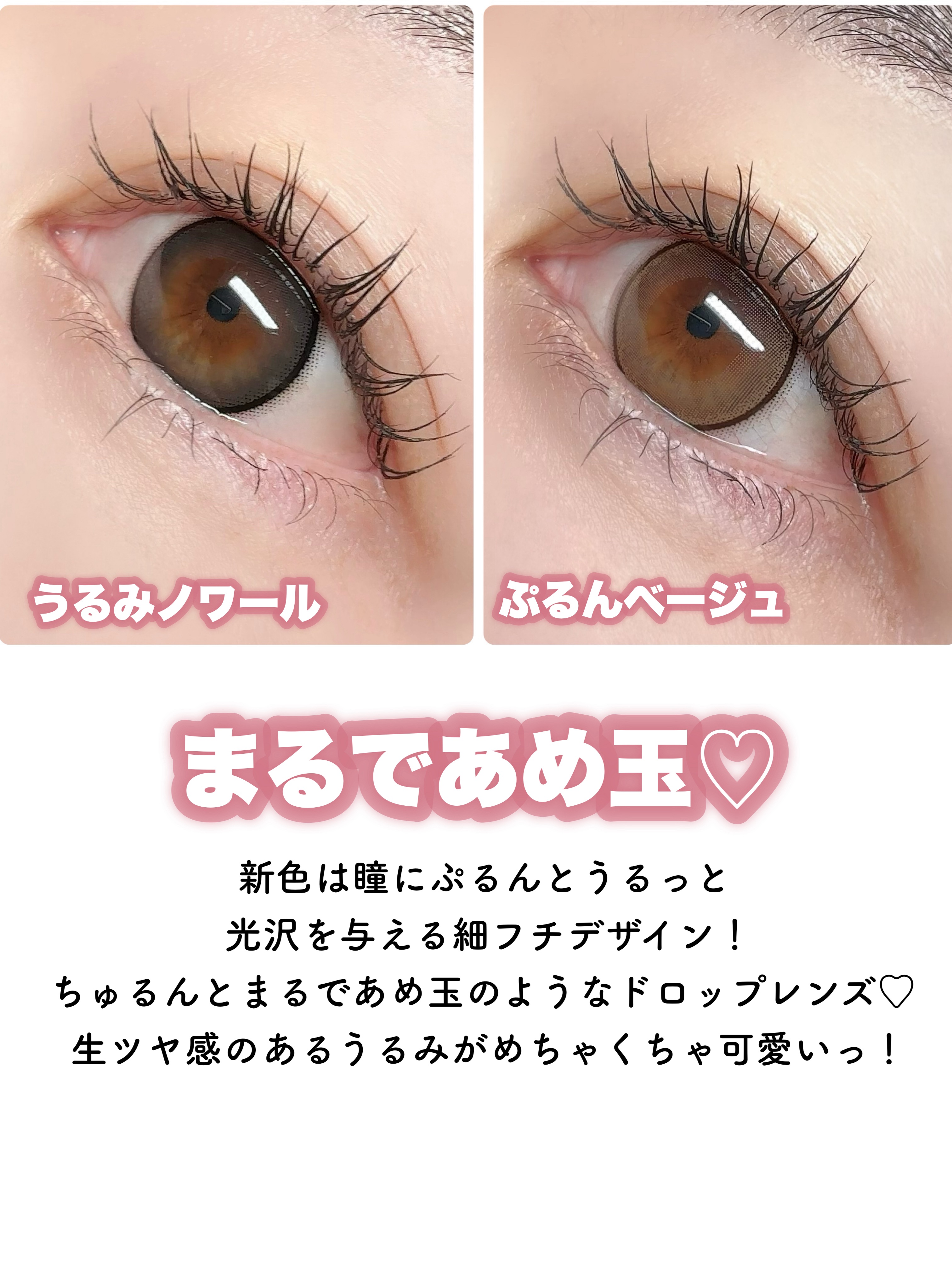 ネオサイトワンデーリングUVから毎日使える小さめちゅるんデザインが新登場!🫧✔︎︎︎︎ぷるんベージュぷるぷるでつや感たっぷりの儚げベージュ超極細フチでぷるんと透けるような瞳に。✔︎︎︎︎うるみノワールうるうる感がくせになる沼落ちダークブラック...
