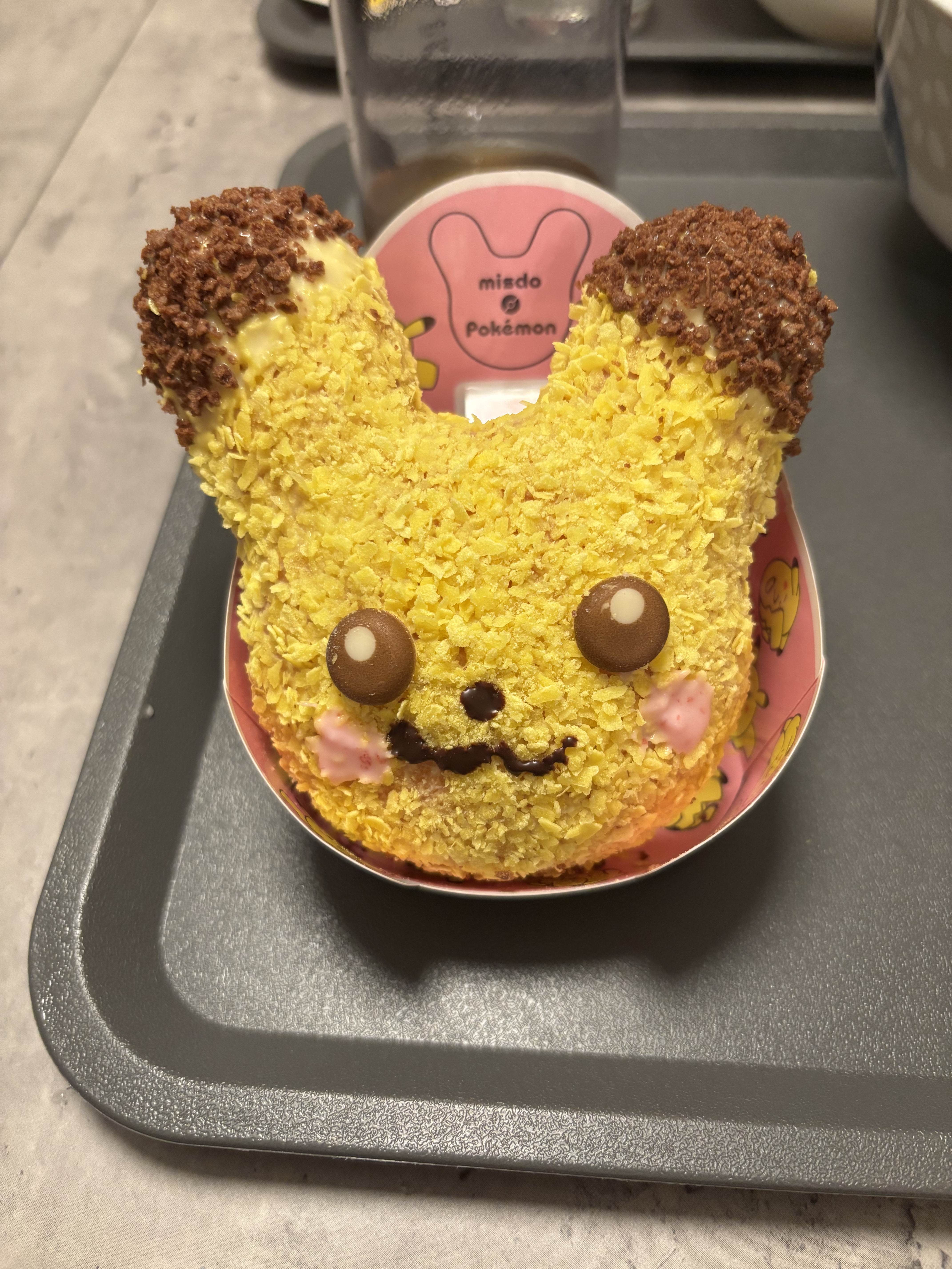 11月5日発売✨️サイトより引用↓↓↓ 🍩もふもふ ピカチュウ ドーナツ ➡️私のお気に入り😍 テイクアウト【税込】:¥334 イートイン 【税込】:¥341 ふんわりとしたイースト生地にホイップ クリームを入れて、カスタード風味フレークとチョコクランチをトッピング。 もふもふとした見た目を表現しました。 目はチョコプレート、ほっぺは ストロベリーチョコでかわいらしく 仕上げました。 🍩ザクザク ピカチュウのしっぽドーナツ ➡️ひかるんのお気に入り😍 テイクアウト【税込】:¥259 イートイン 【税込】:¥264 ふんわり食感のシュー生地にホワイトチョコをコーティングし、ゴールデントッピングを重ねて、線がけをしピカチュウの背中を表現しました。最後にピカチュウのしっぽのピックをつけました。 全部美味しかったけど、私のイチオシは、 ピカチュウの顔のドーナツ(ღ✪v✪) ひかるんがまた買ってきてくれた(⸝⸝⸝ᵒ̴̶̷̥́ ⌑ ᵒ̴̶̷̣̥̀⸝⸝⸝) あとは、母親が食べに連れて行ってくれた(´•͈ω•͈⑅) 本当にありがとう(⸝⸝⸝ᵒ̴̶̷̥́ ⌑ ᵒ̴̶̷̣̥̀⸝⸝⸝) 話変わりますが、今日はポケパークカントーのチケット抽選日?GETできますように🙏 みていただき、 ありがとうございましたm(*_ _)m #ミスタードーナツ #もふもふ ピカチュウ ドーナツ #タマゲた! タマゲタケ ドーナツ #ザクザク ピカチュウのしっぽドーナツ #タマゲた! ビリリダマのドーナツ ホワイトタ#マゲた! ミミッキュのドーナツ チョコ