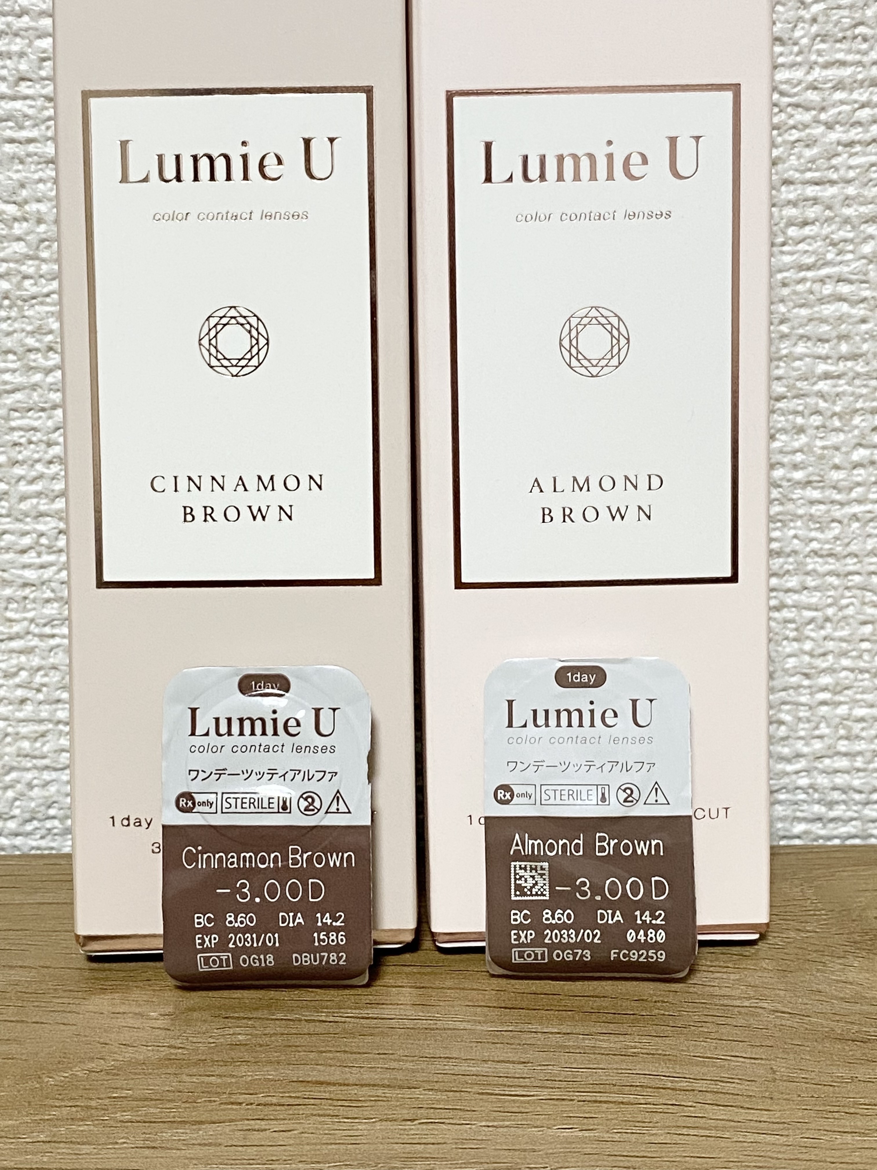 - ※2025年6月以降、商品パッケージ裏面・側面の一部表記を順次変更いたします。尚、これにかかる商品の交換・返品は承っておりません。 ”欲しいのは 大人の透明感”がコンセプト。 黒目のサイズはそこまで変えず、質感だけをナチュラルにキラリと整えてくれるレンズデザインが特徴となっています。 誰でも“裸眼の綺麗な人”に見せてくれる、全2色のラインナップです。 CINNAMON BROWN(シナモンブラウン) DIA 14.2mm / 着色直径12.6mm 透明感のあるシナモンカラー×細フチデザイン 瞳、本来の美しさを引き立てる裸眼風レンズ ALMOND BROWN(アーモンドブラウン)DIA 14.2mm / 着色直径12.6mm 温かみのあるアーモンドカラー×細フチデザイン 瞳、本来の美しさを引き立てる裸眼風レンズ GEM CHOCOLAT(ジェムショコラ)DIA:14.2mm / 着色直径:12.8mm 光を取り込むショコラブラウンカラー×瞳に馴染むふんわりぼかしフチデザイン 瞳、本来の美しさを引き立てる裸眼風レンズ カラーコンタクトレンズの不適正使用による眼障害の危険性等などがあります。 ●コンタクトレンズは高度管理医療機器です。不十分な洗浄・消毒など不適切なケアや、長時間・交換期間を超えた装用により、アレルギー性結膜炎、角膜感染症、角膜潰瘍等の重篤な眼障害が発生する危険性があります ●ご使用前に取扱説明書を確認してください 使用上の留意事項 ●眼科医院等を受診してからお求めください ●眼に異常を感じたら直ちにレンズ使用を中止し、お近くの眼科等で診察を受けてください ●医師の指示にしたがってご使用ください ●コンタクトレンズを装用する場合、自覚症状がなくても、眼科医院等での定期検査を受けてください ●レンズに不具合がある場合は使用しないでください