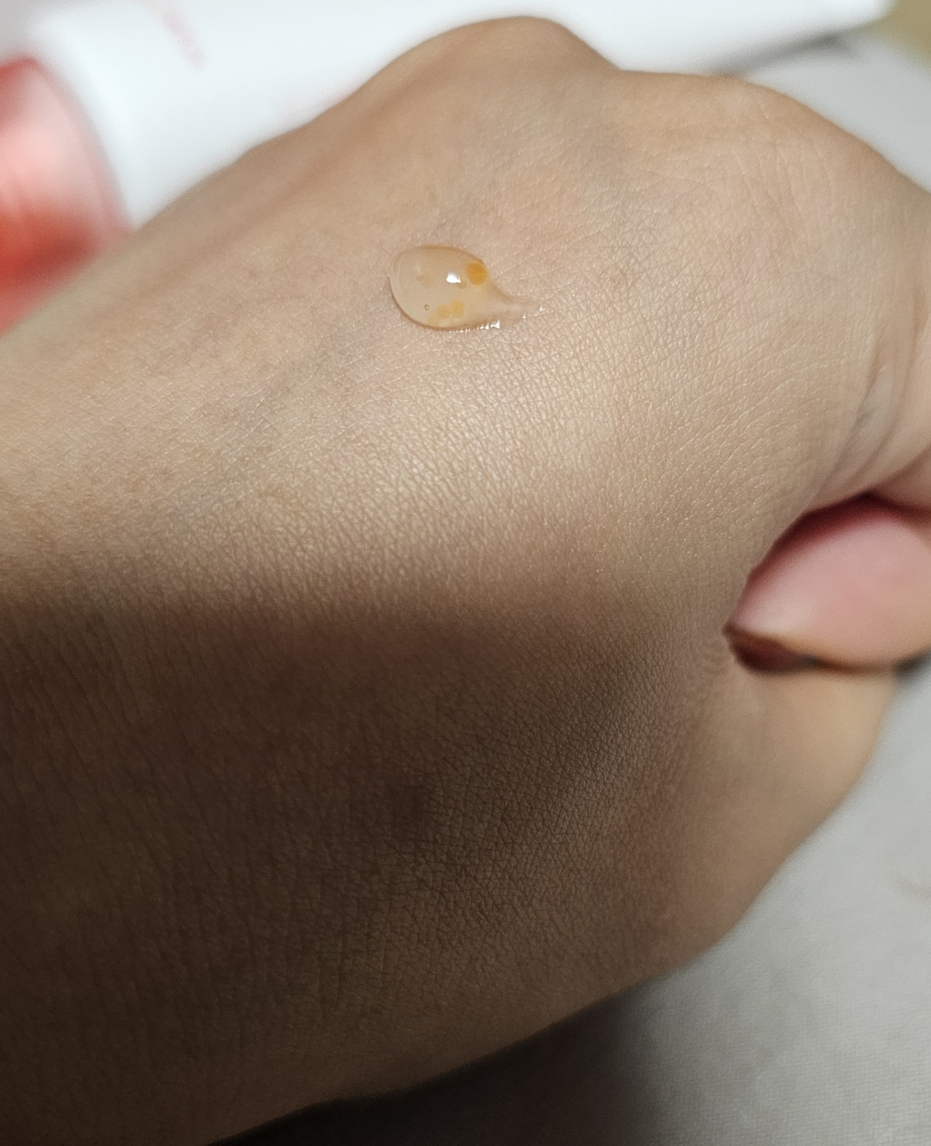 肌バリア強化、高濃度美容液とのことでワクワクしながら開封しました。 見た目は乳液みたいな乳白色。モッチリしてるけど、意外とサラッとしたテクスチャ。 ベタつきなくサラッともちっとした仕上がり。朝晩関係なく使えるのも◎