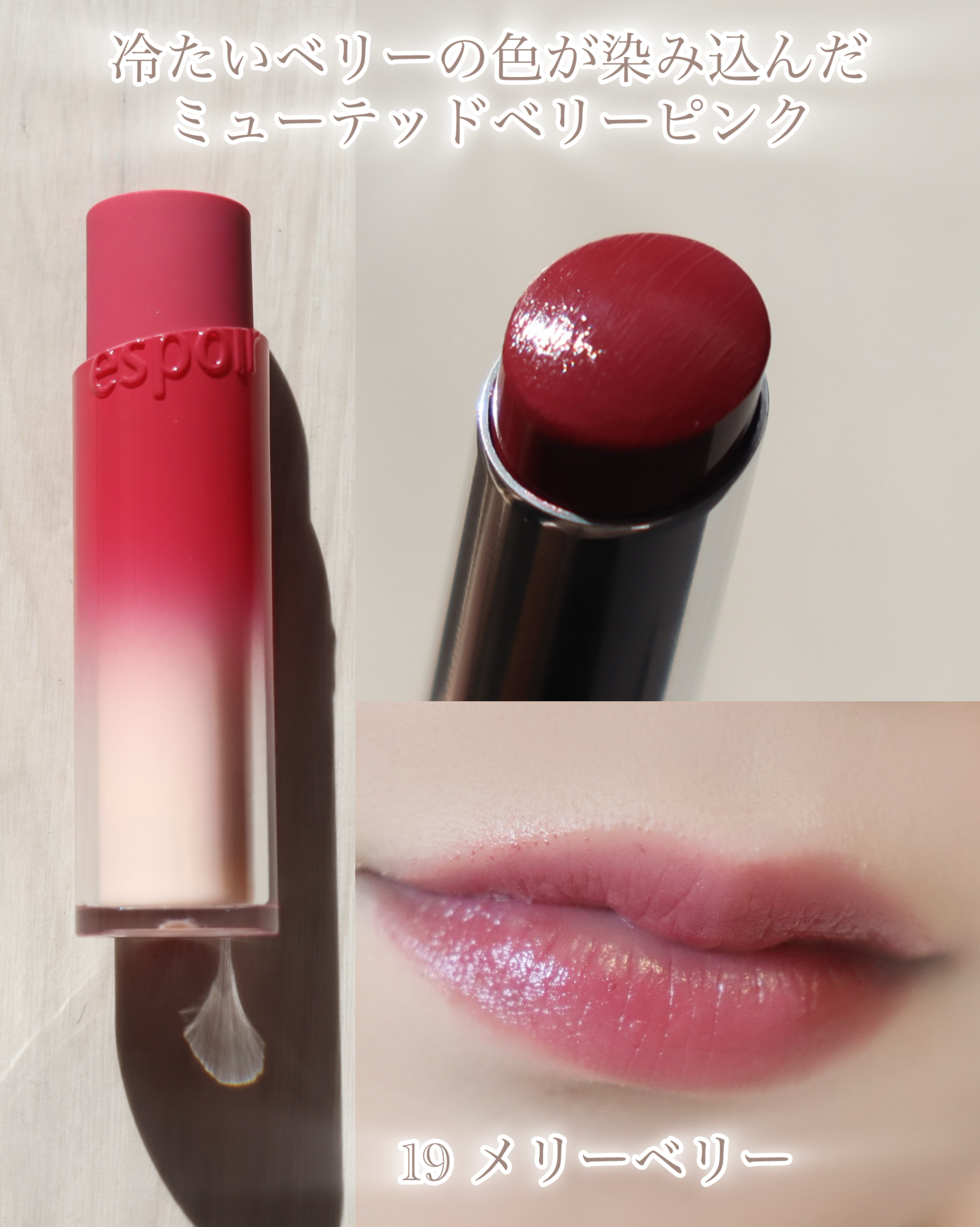 冬メイクにぴったりなエスポアのMerryBerrySeriesをフルリップとグラデーションリップでそれぞれ塗った時の違いをまとめてみた🍒✨透け感のあるツヤとベリーカラーがとにかく可愛くて、クリスマスの雰囲気にもすごく合うこの3色♡⸻🍒■Ber...