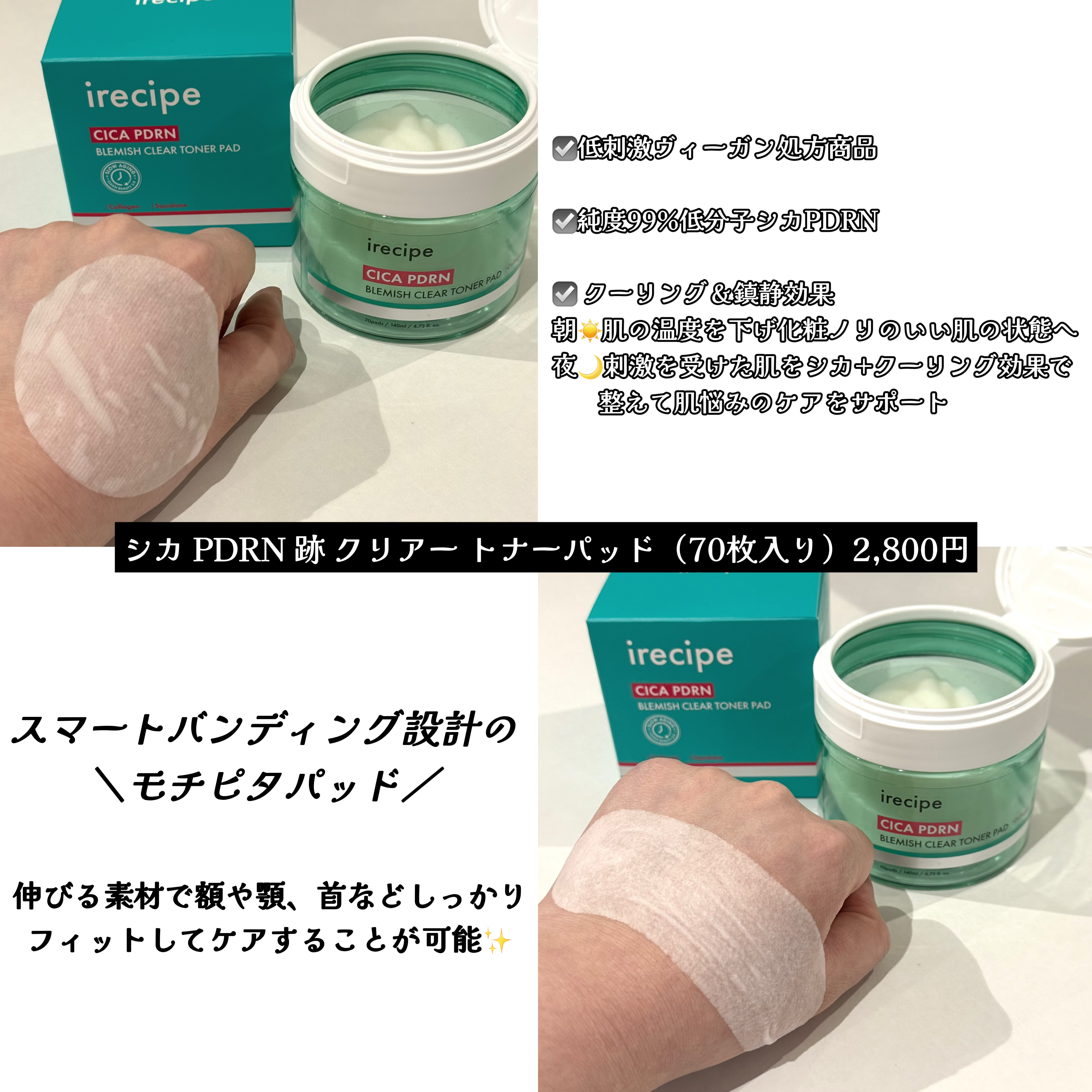 #PRirecipe様(@irecipe_kr)よりご提供いただきました!「シカPDRN跡クリアートナーパッド」・低刺激ヴィーガン処方商品モチピタパッド(スマートバンディング設計)がとても新感覚!かなり伸びるので顎や額などもピタッとフィットし...