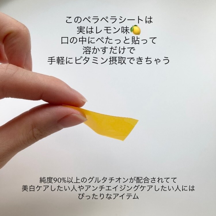 | サプリメントランキング第95位 | 薄っぺらい黄色いフィルムを口を開けて 上の方に貼るだけ😚 味は、酸っぱくてレモン🍋味で美味しい♡ | 詳細を見る | |