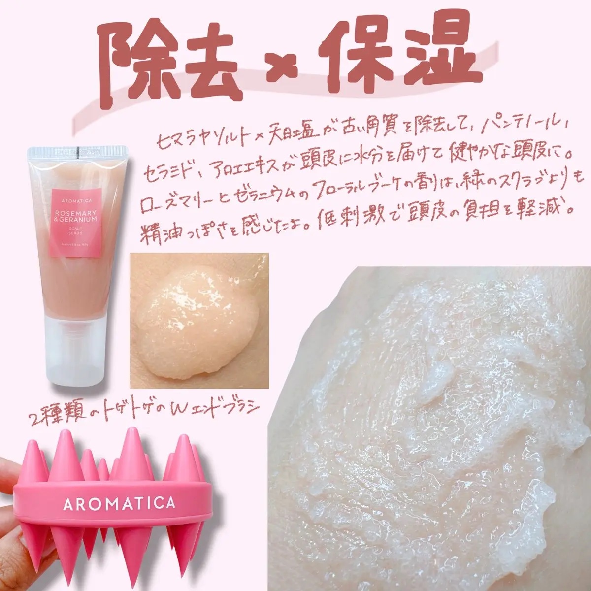 ROMATICA⧉ローズマリー&ゼラニウムスカルプスクラブ⧉🌺ヒマラヤピンクソルトと高純度天日塩が頭皮にたまった角質を優しくケア🌸ローズマリーとゼラニウムの香りですっきりリフレッシュ✼••••✼••••✼ゼラニウムの香りがしっかりとある、スカ...