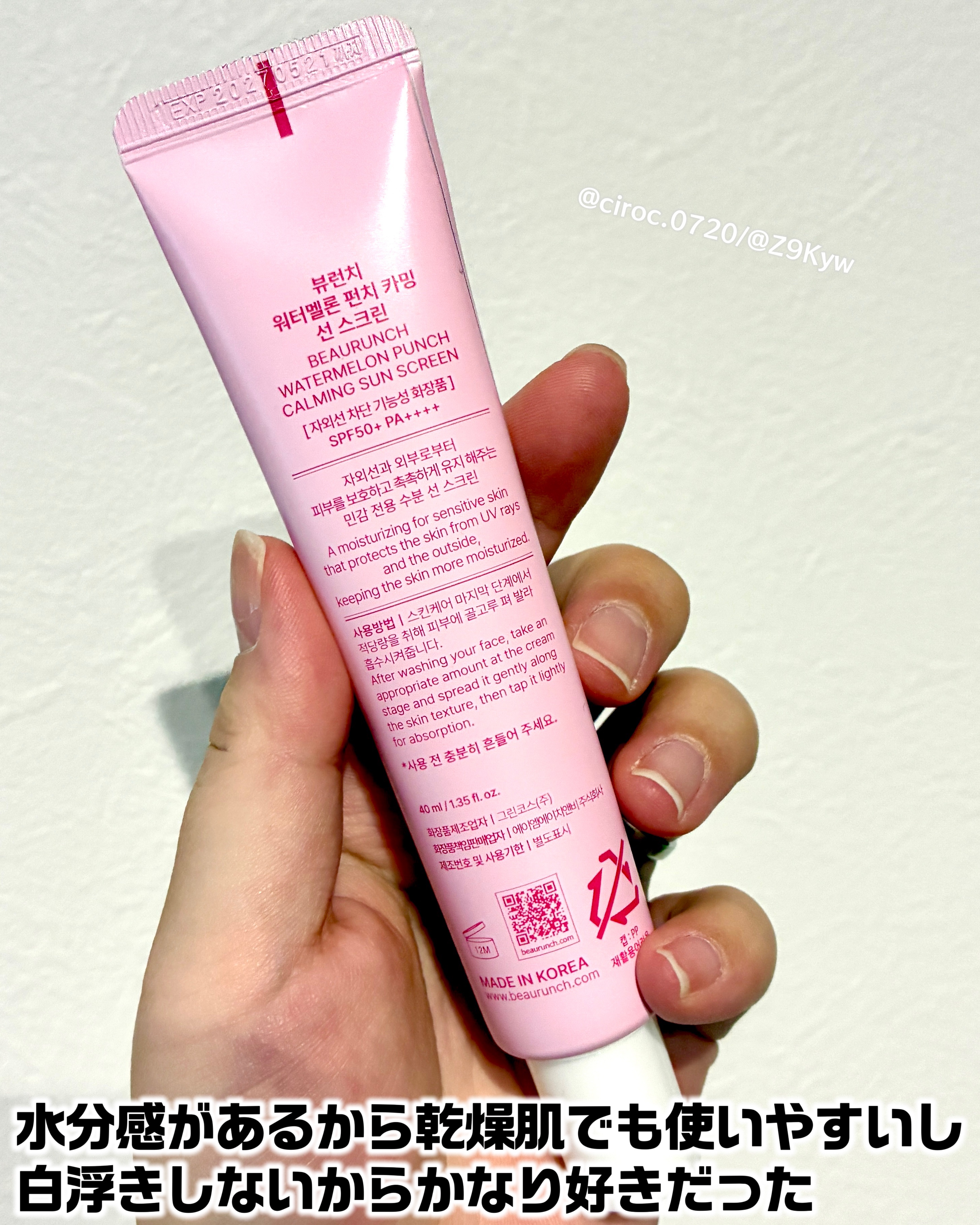 瑞々しい!乾燥肌向け。オイリー肌さんにはちょっと重いかも? セラミド入り 明るめのピンクだけど、瑞々しいのであまり色はつかない ゆるめのテクスチャーで伸びが良い SPF50 PA+++