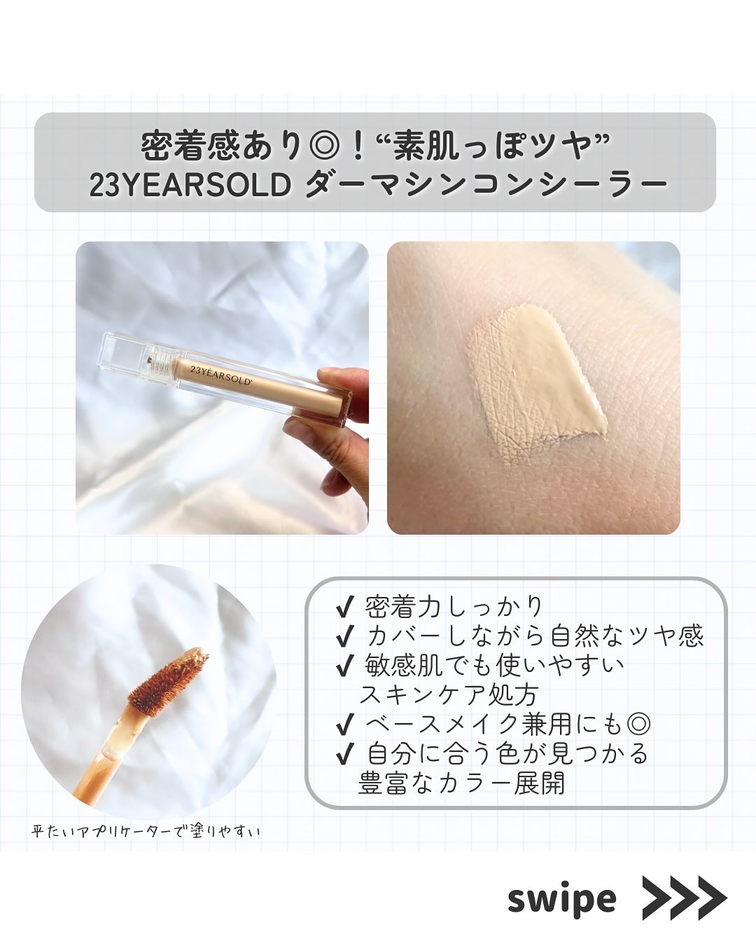 ⋆⸜23yearsoldの肌想いコンシーラー⸝⋆スキンケア発想で低刺激&ドクダミ成分をたっぷり配合!お肌に負担をかけにくいから罪悪感なく使えちゃうよ😳💙もちろんそれだけじゃなくて、さらっと軽いのにピタッと密着してくれるの🙂↕️私は明るめカラ...