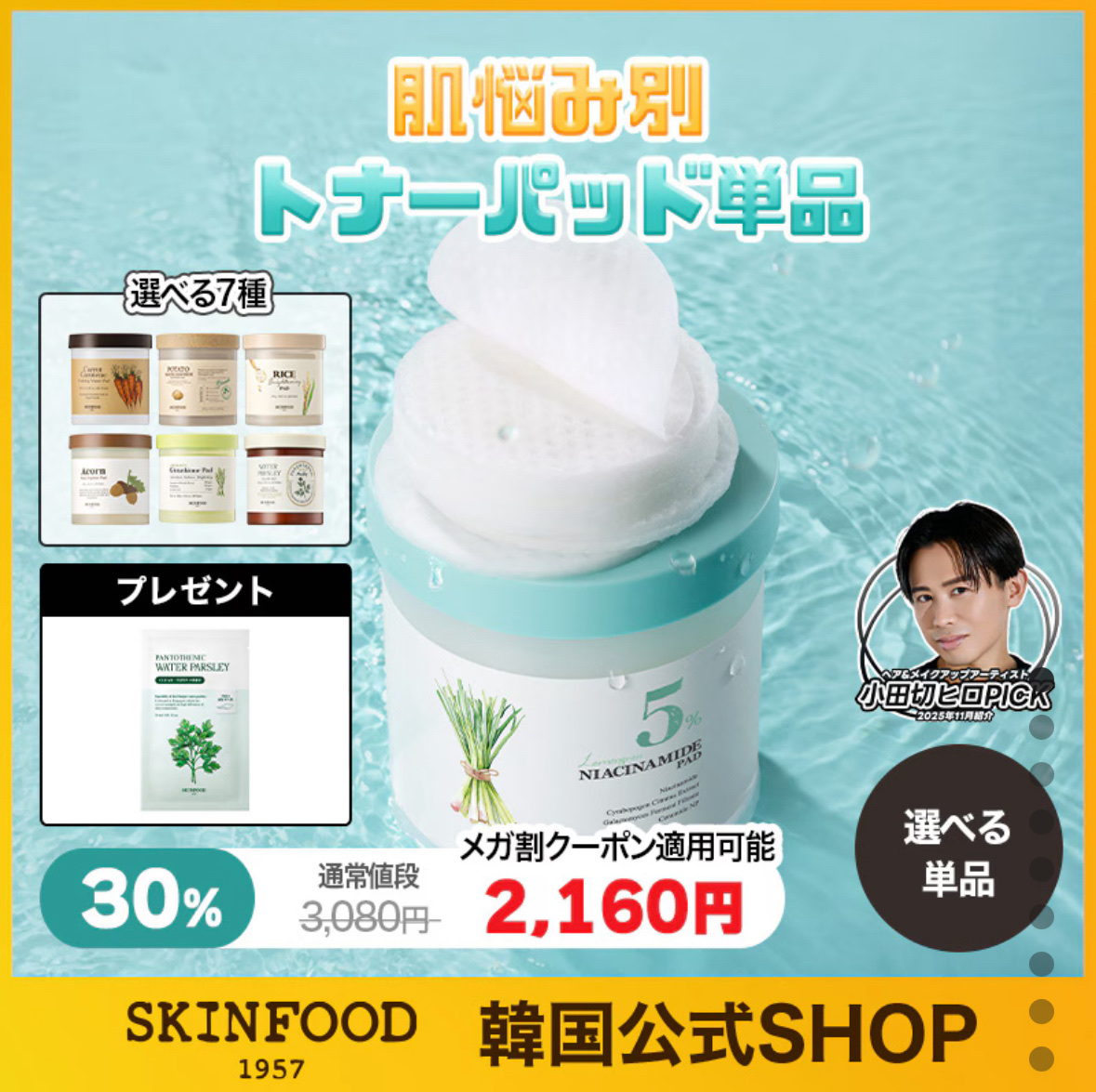 SKINFOOD キャロットカロテン カーミングウォーターパッド | 3,080円 |