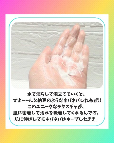 - 肌に触れるたび、ふわっと弾むような濃密泡。 納豆の糸のように伸びるユニークなテクスチャーが肌にぴたりと密着し、やさしい使い心地で洗い上げます。 パパイン酵素*とコーンスターチ*が肌表面の不要な角質や汚れを取り除き、ガラクトミセス培養液*のうるおいでなめらかな肌へ。 洗い流した後も、肌にしっとりとしたうるおい感を。 *すべて整肌成分/原料の特性に限ります <特長成分> ・ガラクトミセス培養液:整肌成分 ・ナットウガム:テクスチャー調整成分 発酵由来の成分が肌をすこやかに保ち、キメのあるなめらかな印象へ ・パパイン酵素:整肌成分 ・コーンスターチ:吸着成分* 不要な角質をやさしい使い心地でオフし、すっきりとした洗い上がりへ *上記の内容は原料の特性に限ります ・3種の植物由来エキス:整肌成分 オクラ果実エキス、ヤマノイモ根エキス、ワカメエキスが、肌を整え、なめらかな仕上がりへ ・加水分解コラーゲン:保湿成分 うるおいを補い、しっとりとした肌へ ・大豆発酵エキス:整肌成分 大豆由来の成分が肌をなめらかに整え、すこやかな状態をキープ <テクスチャー&香り> テクスチャー ・きめ細かく泡立つパウダー洗顔テクスチャー ・もっちりのびる弾力泡 香り 無香料 色 白色
