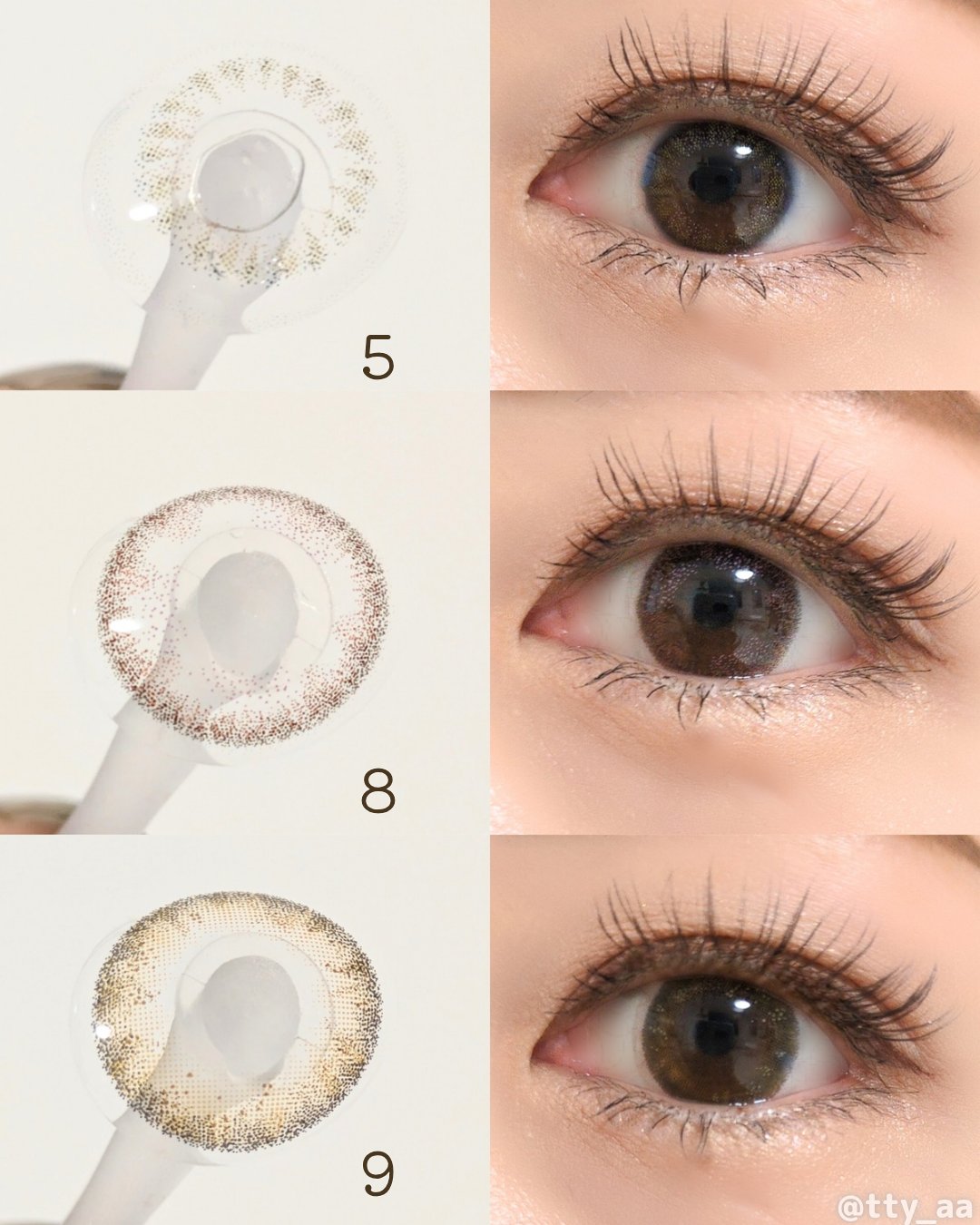 - 「左右⾮対称なデザイン」で「本来の⾃分の瞳の輝きを⽣かす」「⾊」ではなく、瞳に⼊る「光」を再現した今までとは異なる発想のこだわりデザインレンズ ⿊⽬を⼤きく、瞳を⾊付けることを⽬的とした従来のカラーコンタクトレンズとは異なる発想で、瞳の中でキラキラと輝く光を表現し、透明感と潤いに溢れた瞳を実現。 繊細な⾊合いとそれを左右⾮対称に配したデザインによって、柔らかく朗らかな印象を⾃然に演出します。 発光するような瞳は、視線を集めるので⼩顔感も期待できます。 着色直径 6:12.1mm、1~4,6,7:13.0mm、5,8:14.0mm 直径(DIA) 6:14.0mm、1~4,6,7:14.2mm、5,8:14.5mm ベースカーブ 1~5,7,8:8.6mm、6:8.7mm 度数 0.00、-0.50D〜-10.00D 含⽔率 38%