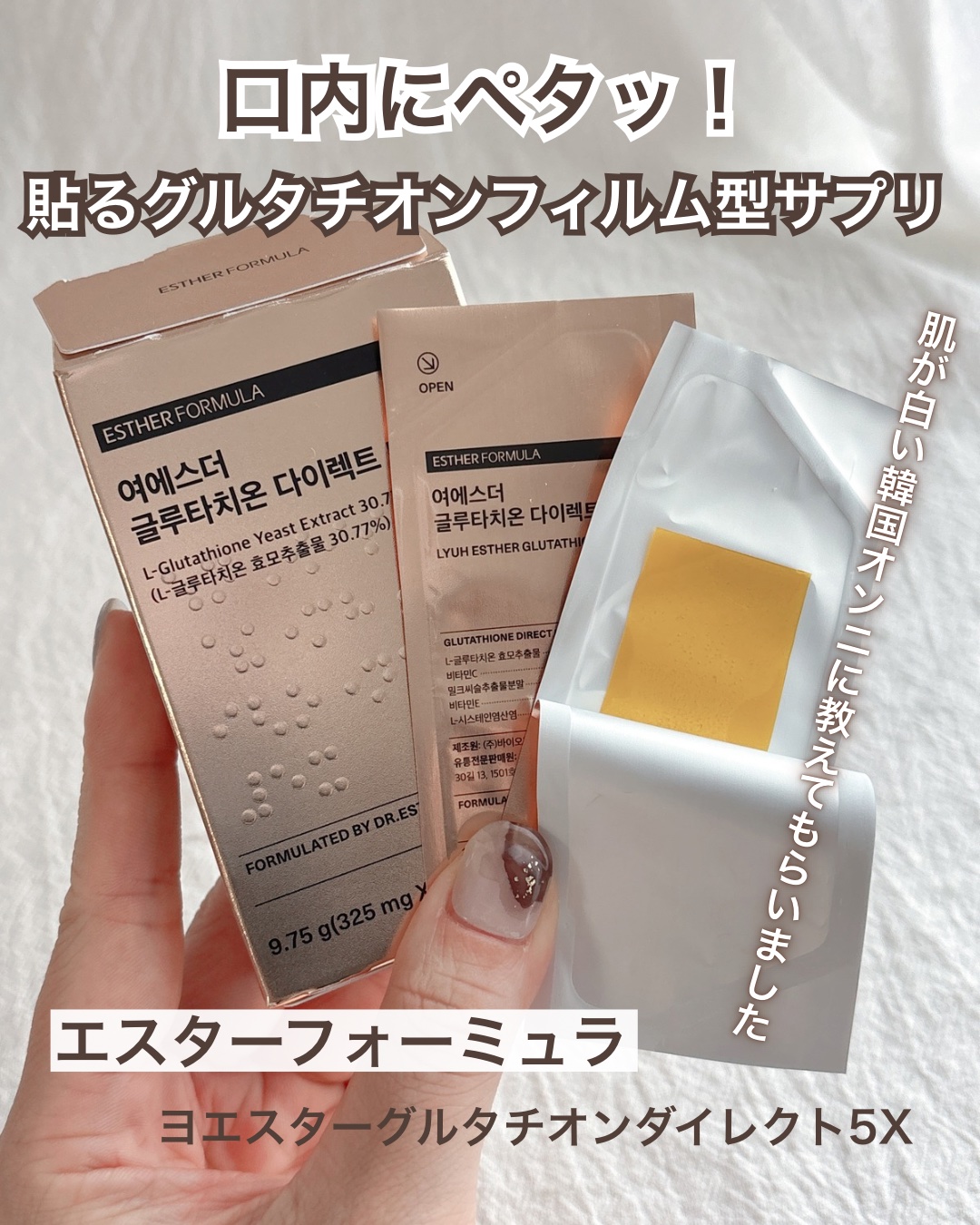 ESTHERFORMULAヨエスターグルタチオンダイレクト5X肌白い韓国オンニから教えてもらった!口の中に貼るだけ?!抗酸化&美白ケア・純度75%以上のオランダ産のプレミアムグルタチオン・ビタミンC、ビタミンE、ミルクシスル、クエン酸含有貼っ...