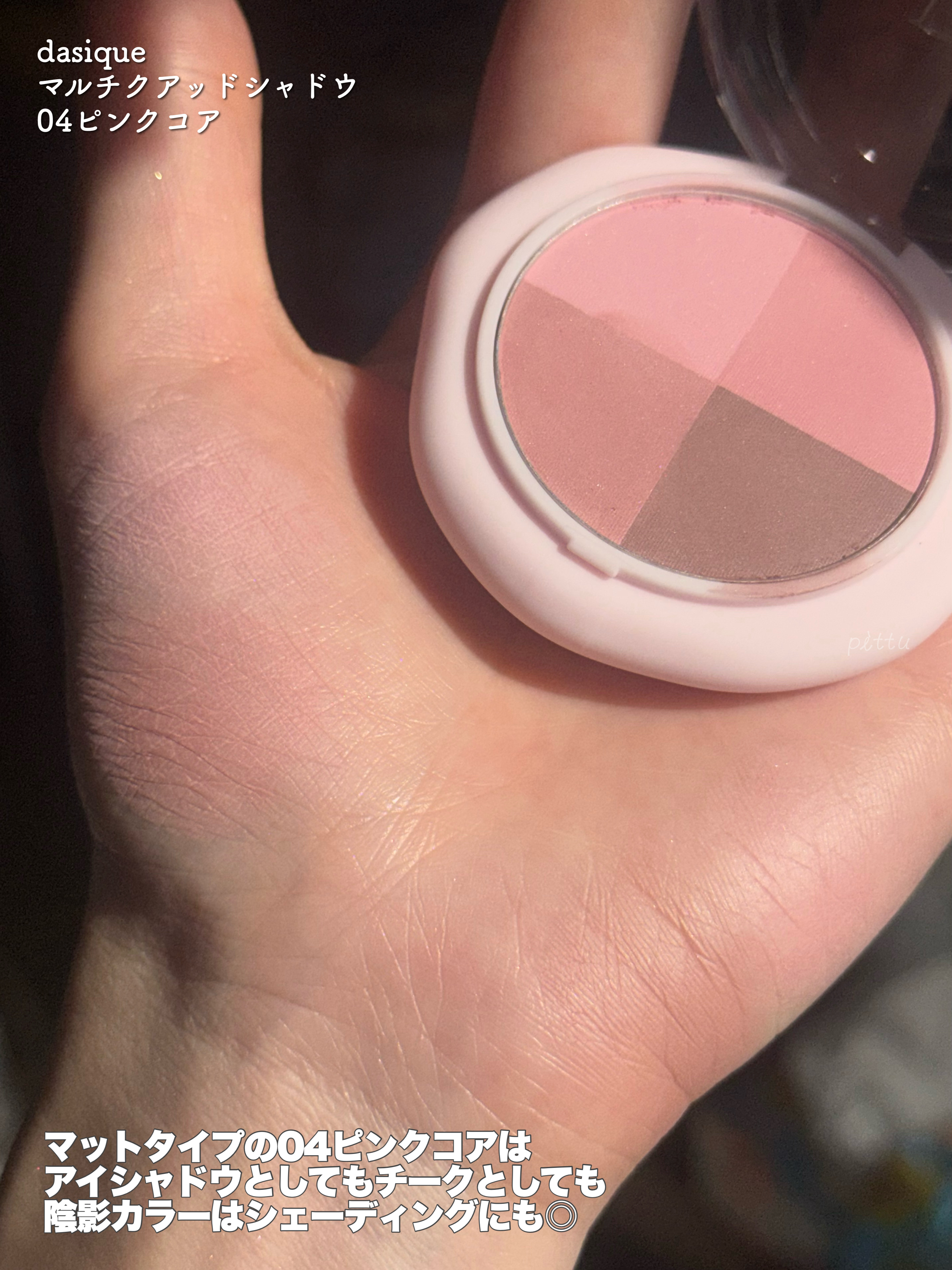 デイジークの新作バレエコアマルチクアッドシャドウ🩰🎀⚜️dasiqueマルチクアッドシャドウ02エンジェルクラッシュ/04ピンクコア02エンジェルクラッシュは明るめなピンクカラーと繊細なシマーパールが綺麗...04ピンクコアはほんのり青みを感...
