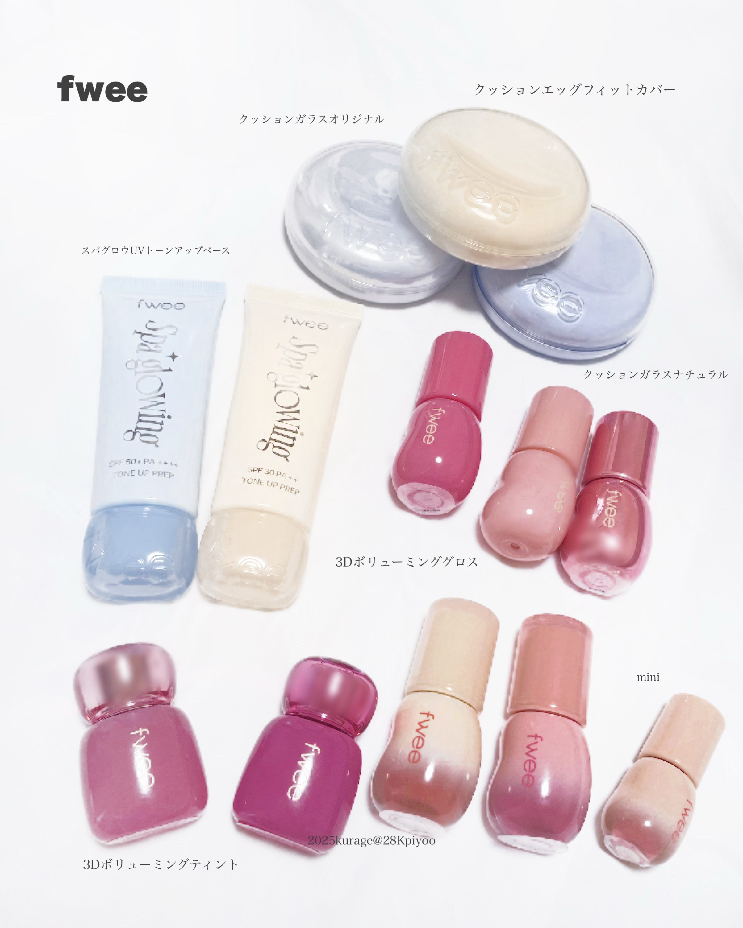 fwee8月末にベストセレクトセットが再登場🩵前回構成に組まれていなかったクッションガラスオリジナルと新作のボリューミングティントも選択出来るようになったよ💗ブルベ向きカラー中心に手持ちのカラーも合わせてスウォッチしているので参考になれば嬉し...
