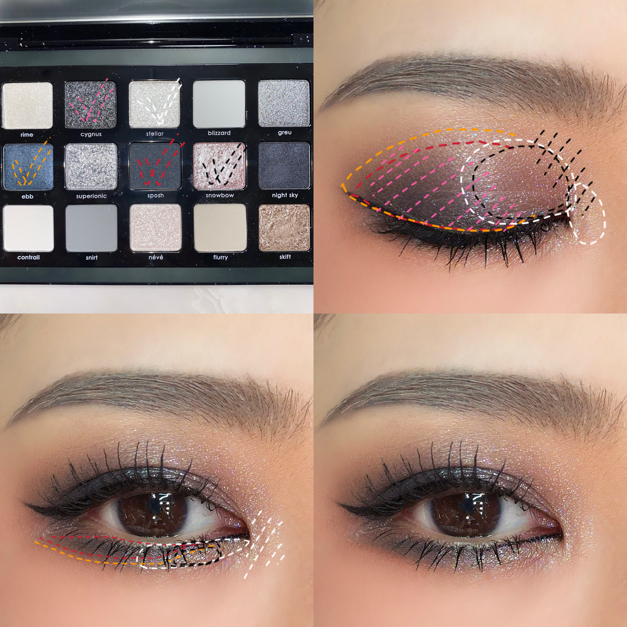 アイシーなピンクと水色のヘイローにしてみたよ🩷🩵やっぱりラメが可愛いパレット🥹✨✨ マットでベースを作ってから、同系色のラメを乗せたヘイローで、下まぶたは馴染みの良いようにベージュとピンクラメにシンプルに❣️ 雪の季節にやりたいメイクが出来たかな🤭☃❄