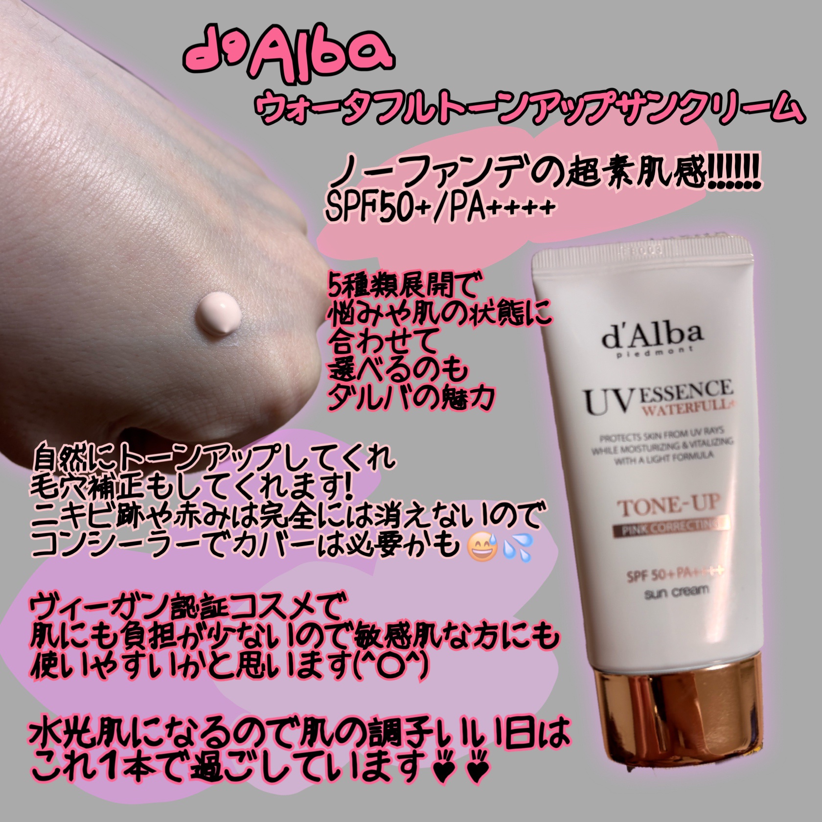 ダルバさまからいただきました♡……………………………ダルバウォータフルトーンアップサンクリーム……………………………ほんのり血色ピンクのサンクリーム🩷強力紫外線カットのSPF50+PA++++白浮きせずナチュラルにカバーしてツヤっとし...