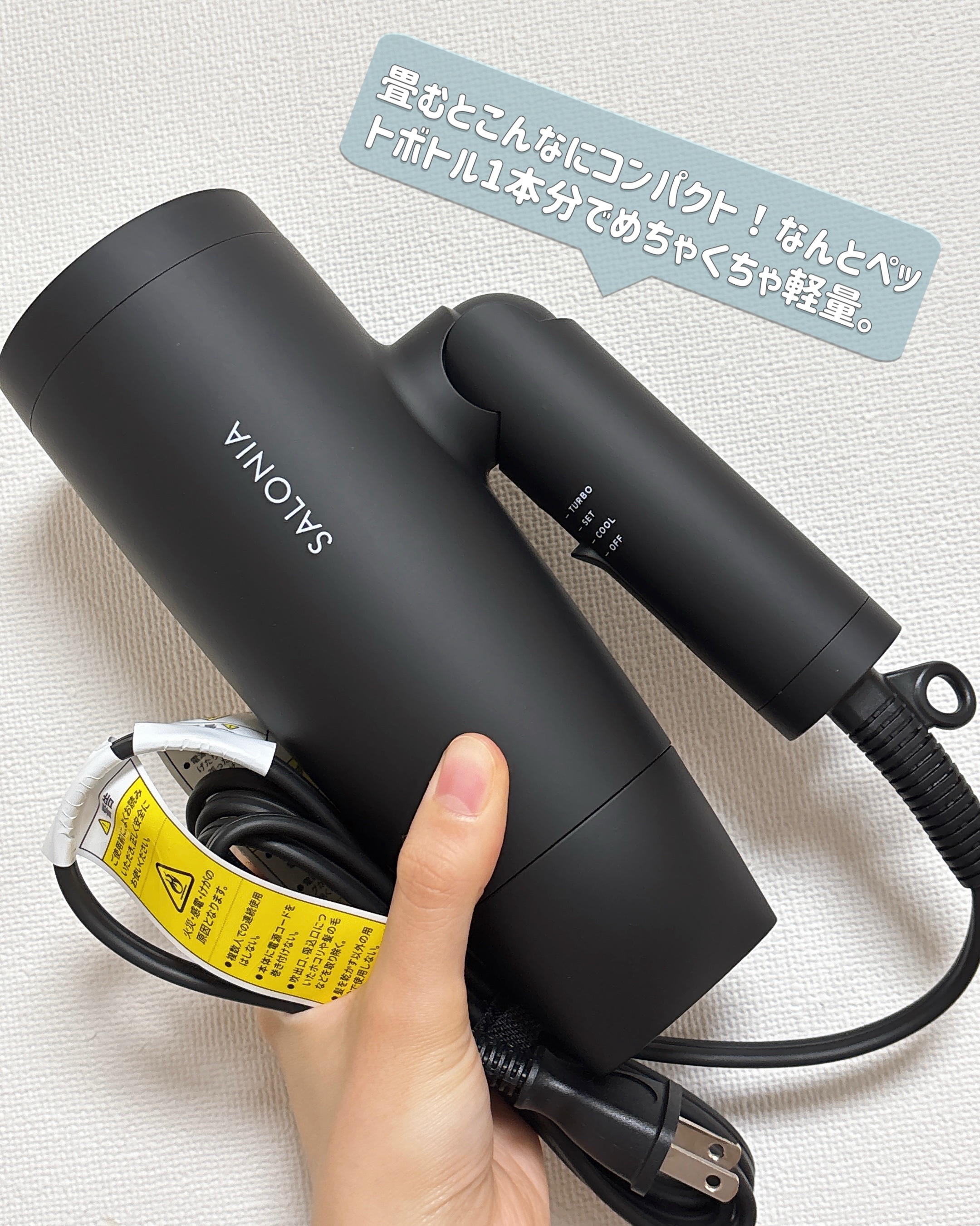 【SALONIAスピーディーイオンドライヤー】大風量で速乾ダメージカットしてくれる時短ドライヤー✨TURBO/SET/COOLの3モード搭載!大風量だから髪が乾くの早くて忙しい朝や夜にも助かる!音量も意外と静か☺️✨500mLペットボトル約1...