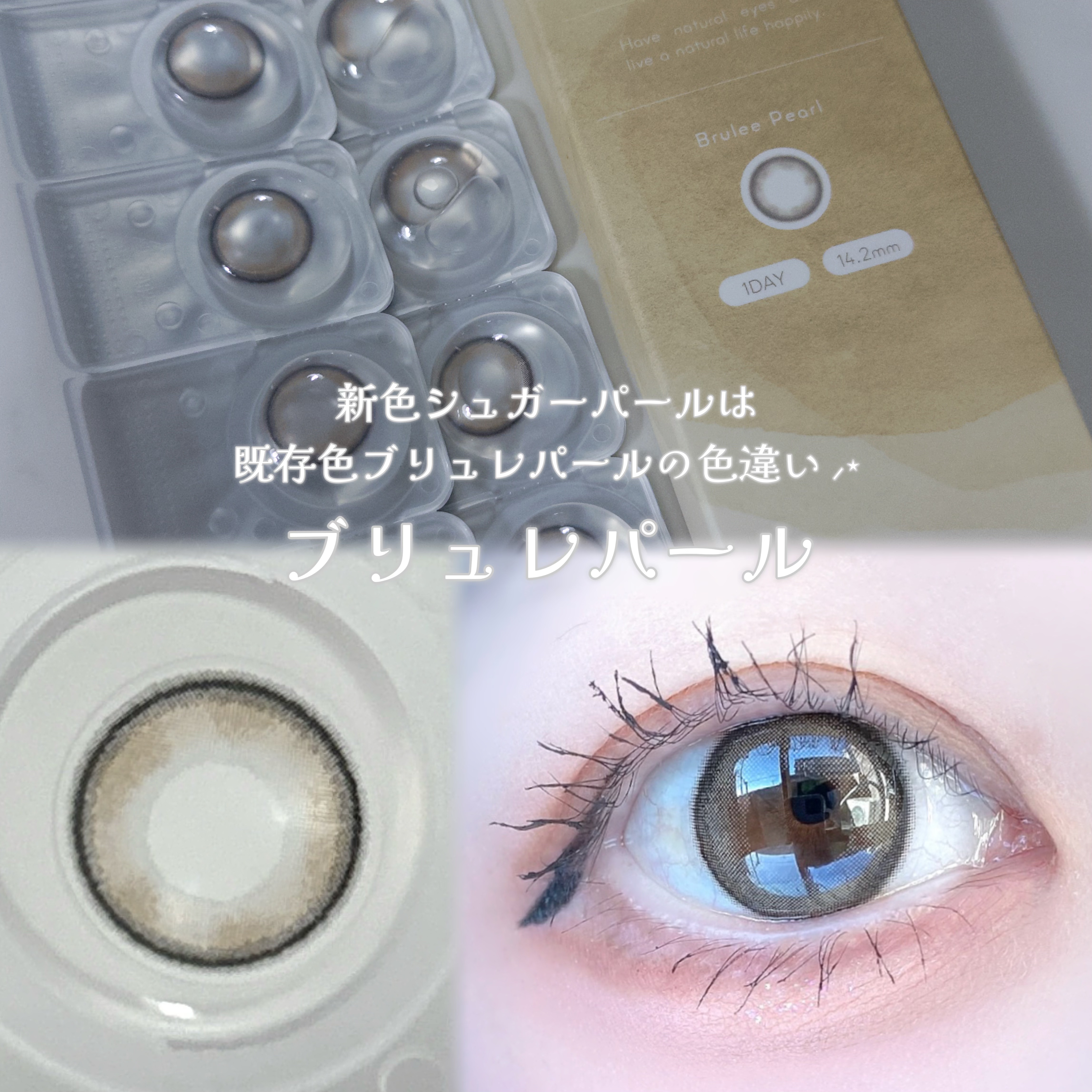 \既存色の色違いも!新色2色レビュー🩵/.feliamoシュガーパール,メルティバター¥1760(税込)/10枚 monthlyもあるよ💕.BC8.6mm含水率55%▪️シュガーパールDIA14.2mm,着色直径13.5mm細フチ×グレー既存...