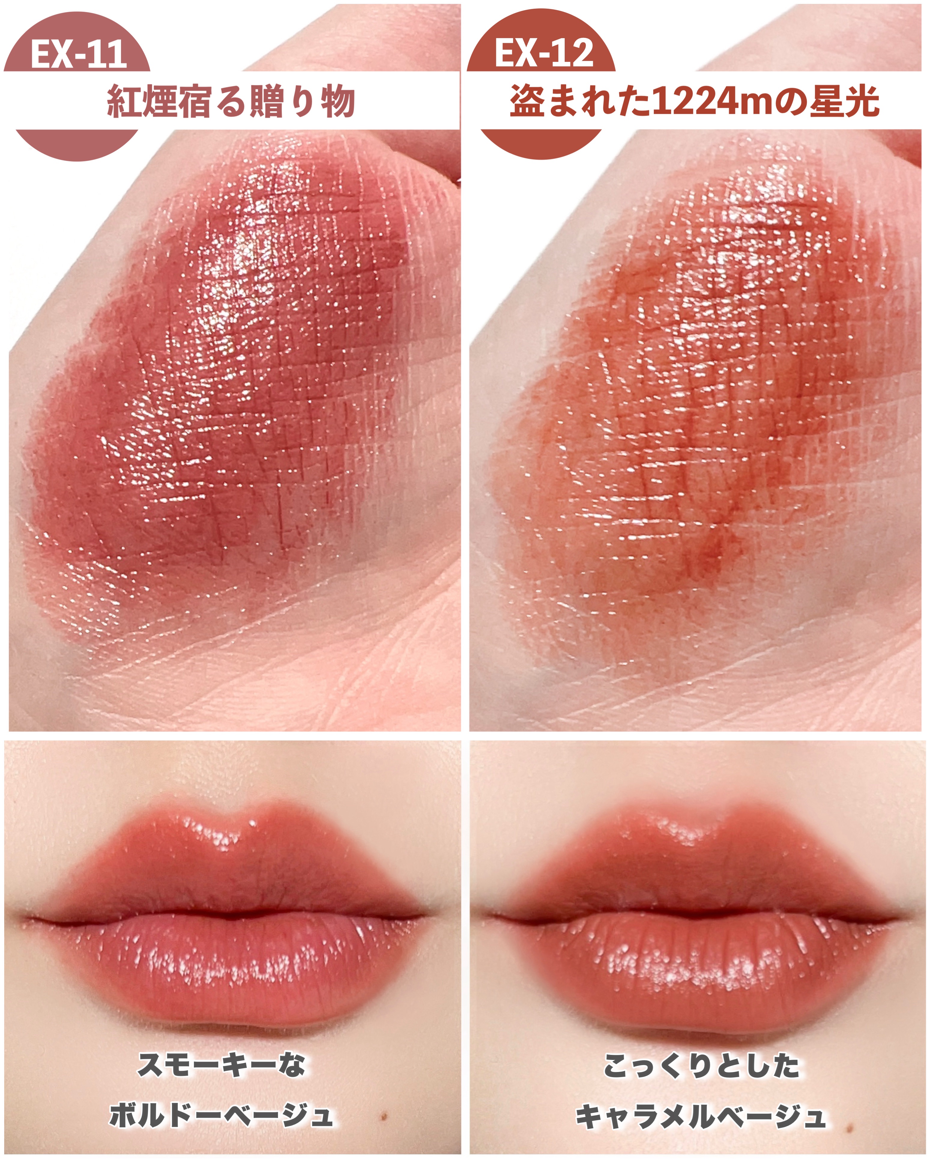 - <01 欲望の塊> テトライソステアリン酸ジペンタエリスリチル、トリ(カプリル酸/カプリン酸)グリセリル、オクチルドデカノール、ラウロイルグルタミン酸ジ(フィトステリル/オクチルドデシル)、ビスアルキル(C16-18)グリセリルウンデシルジメチコン、イソノナン酸イソトリデシル、水添ポリイソブテン、ラウロイルグルタミン酸ジ(オクチルドデシル/フィトステリル/ベヘニル)、パラフィン、合成ワックス、ダイマージリノール酸(フィトステリル/イソステアリル/セチル/ステアリル/ベヘニル)、マイクロクリスタリンワックス、水添マイクロクリスタリンワックス、ヒドロキシステアリン酸エチルヘキシル、トコフェロール、ホホバ種子油、オリーブ果実油、アーモンド油、(エチレン/プロピレン)コポリマー、ポリエチレン、ジメチコン、(+/-)(チタン/酸化チタン)焼結物、マイカ、ラウロイルアスパラギン酸Na、ラウロイルリシン、塩化亜鉛、酸化チタン、酸化鉄、水酸化Al、硫酸Ba、トリイソステアリン酸イソプロピルチタン、酸化スズ、ホウケイ酸(Ca/Al)、合成フルオロフロゴパイト、黄4、黄5、赤104(1)、赤201、赤202 <02 ピンクバナナ> テトライソステアリン酸ジペンタエリスリチル、トリ(カプリル酸/カプリン酸)グリセリル、オクチルドデカノール、ラウロイルグルタミン酸ジ(フィトステリル/オクチルドデシル)、ビスアルキル(C16-18)グリセリルウンデシルジメチコン、イソノナン酸イソトリデシル、水添ポリイソブテン、ラウロイルグルタミン酸ジ(オクチルドデシル/フィトステリル/ベヘニル)、パラフィン、合成ワックス、ダイマージリノール酸(フィトステリル/イソステアリル/セチル/ステアリル/ベヘニル)、マイクロクリスタリンワックス、水添マイクロクリスタリンワックス、ヒドロキシステアリン酸エチルヘキシル、トコフェロール、ホホバ種子油、オリーブ果実油、アーモンド油、(エチレン/プロピレン)コポリマー、ポリエチレン、ジメチコン、(+/-)(チタン/酸化チタン)焼結物、マイカ、ラウロイルアスパラギン酸Na、ラウロイルリシン、塩化亜鉛、酸化チタン、酸化鉄、水酸化Al、硫酸Ba、トリイソステアリン酸イソプロピルチタン、酸化スズ、ホウケイ酸(Ca/Al)、合成フルオロフロゴパイト、黄4、黄5、赤104(1)、赤201、赤202 <03 陽炎> テトライソステアリン酸ジペンタエリスリチル、トリ(カプリル酸/カプリン酸)グリセリル、オクチルドデカノール、ラウロイルグルタミン酸ジ(フィトステリル/オクチルドデシル)、ビスアルキル(C16-18)グリセリルウンデシルジメチコン、イソノナン酸イソトリデシル、水添ポリイソブテン、ラウロイルグルタミン酸ジ(オクチルドデシル/フィトステリル/ベヘニル)、パラフィン、合成ワックス、ダイマージリノール酸(フィトステリル/イソステアリル/セチル/ステアリル/ベヘニル)、マイクロクリスタリンワックス、水添マイクロクリスタリンワックス、ヒドロキシステアリン酸エチルヘキシル、トコフェロール、ホホバ種子油、オリーブ果実油、アーモンド油、(エチレン/プロピレン)コポリマー、ポリエチレン、ジメチコン、(+/-)(チタン/酸化チタン)焼結物、マイカ、ラウロイルアスパラギン酸Na、ラウロイルリシン、塩化亜鉛、酸化チタン、酸化鉄、水酸化Al、硫酸Ba、トリイソステアリン酸イソプロピルチタン、酸化スズ、ホウケイ酸(Ca/Al)、合成フルオロフロゴパイト、黄4、黄5、赤104(1)、赤201、赤202 <04 パンプキンワイン> テトライソステアリン酸ジペンタエリスリチル、トリ(カプリル酸/カプリン酸)グリセリル、オクチルドデカノール、ラウロイルグルタミン酸ジ(フィトステリル/オクチルドデシル)、ビスアルキル(C16-18)グリセリルウンデシルジメチコン、イソノナン酸イソトリデシル、水添ポリイソブテン、ラウロイルグルタミン酸ジ(オクチルドデシル/フィトステリル/ベヘニル)、パラフィン、合成ワックス、ダイマージリノール酸(フィトステリル/イソステアリル/セチル/ステアリル/ベヘニル)、マイクロクリスタリンワックス、水添マイクロクリスタリンワックス、ヒドロキシステアリン酸エチルヘキシル、トコフェロール、ホホバ種子油、オリーブ果実油、アーモンド油、(エチレン/プロピレン)コポリマー、ポリエチレン、ジメチコン、(+/-)(チタン/酸化チタン)焼結物、マイカ、ラウロイルアスパラギン酸Na、ラウロイルリシン、塩化亜鉛、酸化チタン、酸化鉄、水酸化Al、硫酸Ba、トリイソステアリン酸イソプロピルチタン、酸化スズ、ホウケイ酸(Ca/Al)、合成フルオロフロゴパイト、黄4、黄5、赤104(1)、赤201、赤202 <05 ダークフィグ> テトライソステアリン酸ジペンタエリスリチル、トリ(カプリル酸/カプリン酸)グリセリル、オクチルドデカノール、ラウロイルグルタミン酸ジ(フィトステリル/オクチルドデシル)、ビスアルキル(C16-18)グリセリルウンデシルジメチコン、イソノナン酸イソトリデシル、水添ポリイソブテン、ラウロイルグルタミン酸ジ(オクチルドデシル/フィトステリル/ベヘニル)、