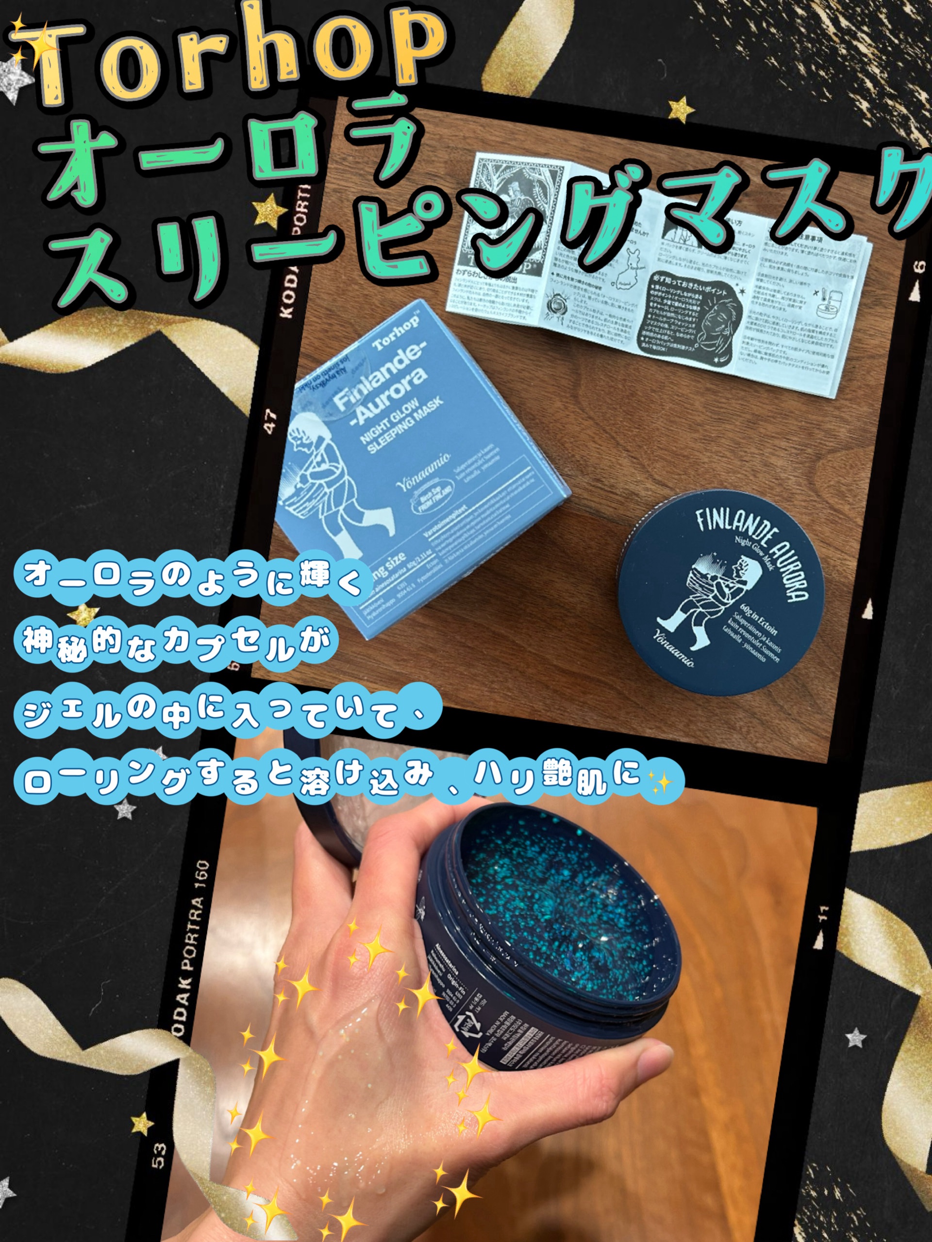 TORHOP▶︎オーロラスリーピングマスクオーロラのような輝きのテクスチャーぷるんとみずみずしいジェルが肌に優しく溶け込んでくれしっとり!寝る前に塗るだけで簡単にうるおい&ハリケアできるそう。薄く伸ばして塗るのがおすすめ#PR#torhop#...