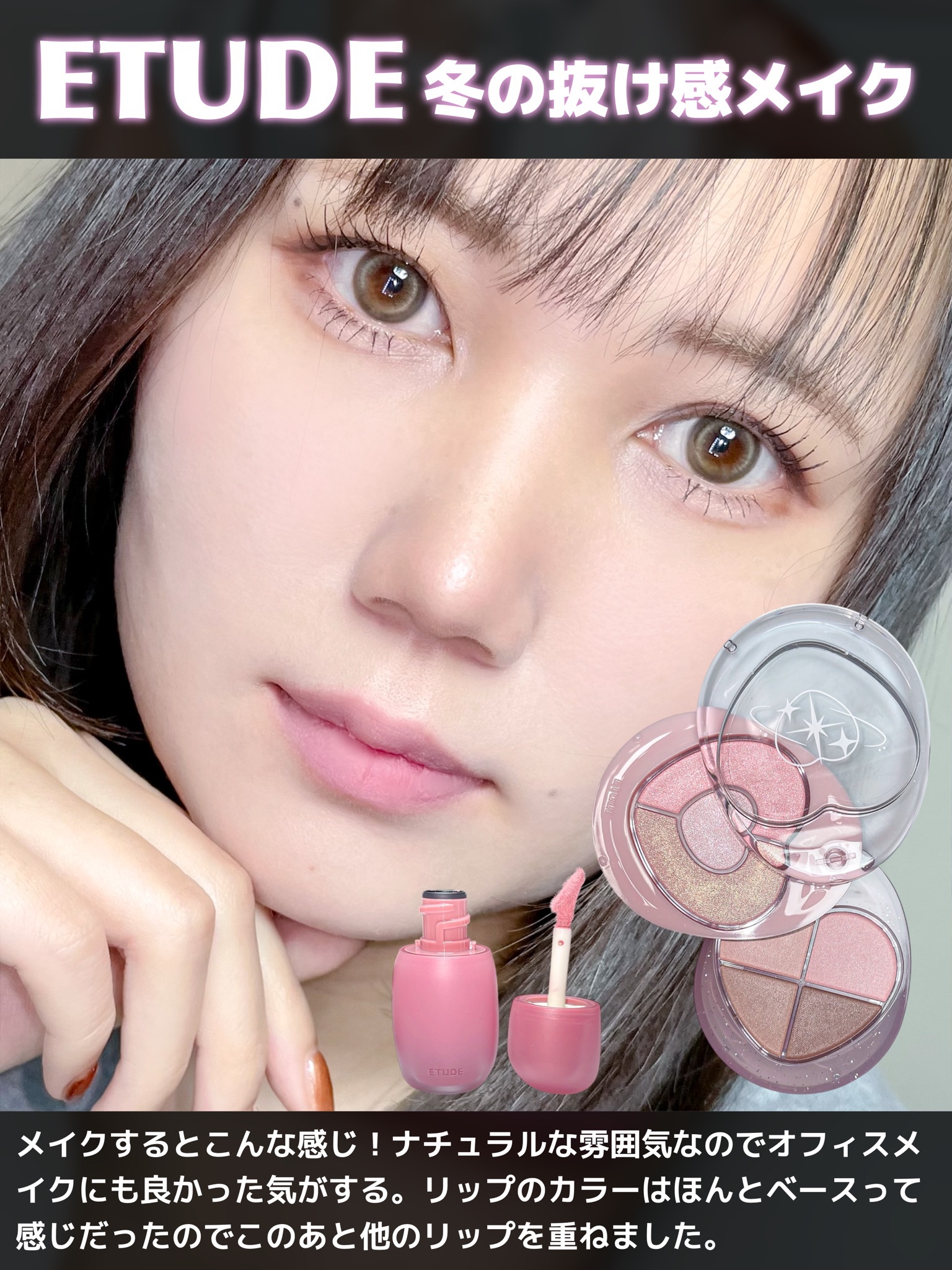 \ETUDEで作る儚げ透明感メイク/ETUDEぽよんアイメイカードキドキチェインジソフトフィクシングティントこれはラブ/ときめきピンクぽよんアイメイカーはハート型チャームが可愛いハイライトとマットの2層パレット。アイシャドウだけでなくハイライ...