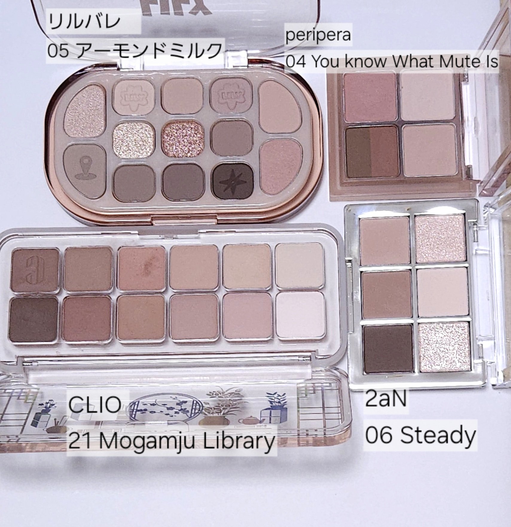 一塗りでしっかり発色するのは naming dasiqueの濃いカラー 穏やか発色なのは VDL HOLIKA HOLIKAのMOOR HOLIKA HOLIKAはブラシ付きで 他のmy faveとの互換性があって組み合わせられるのも楽しい商品