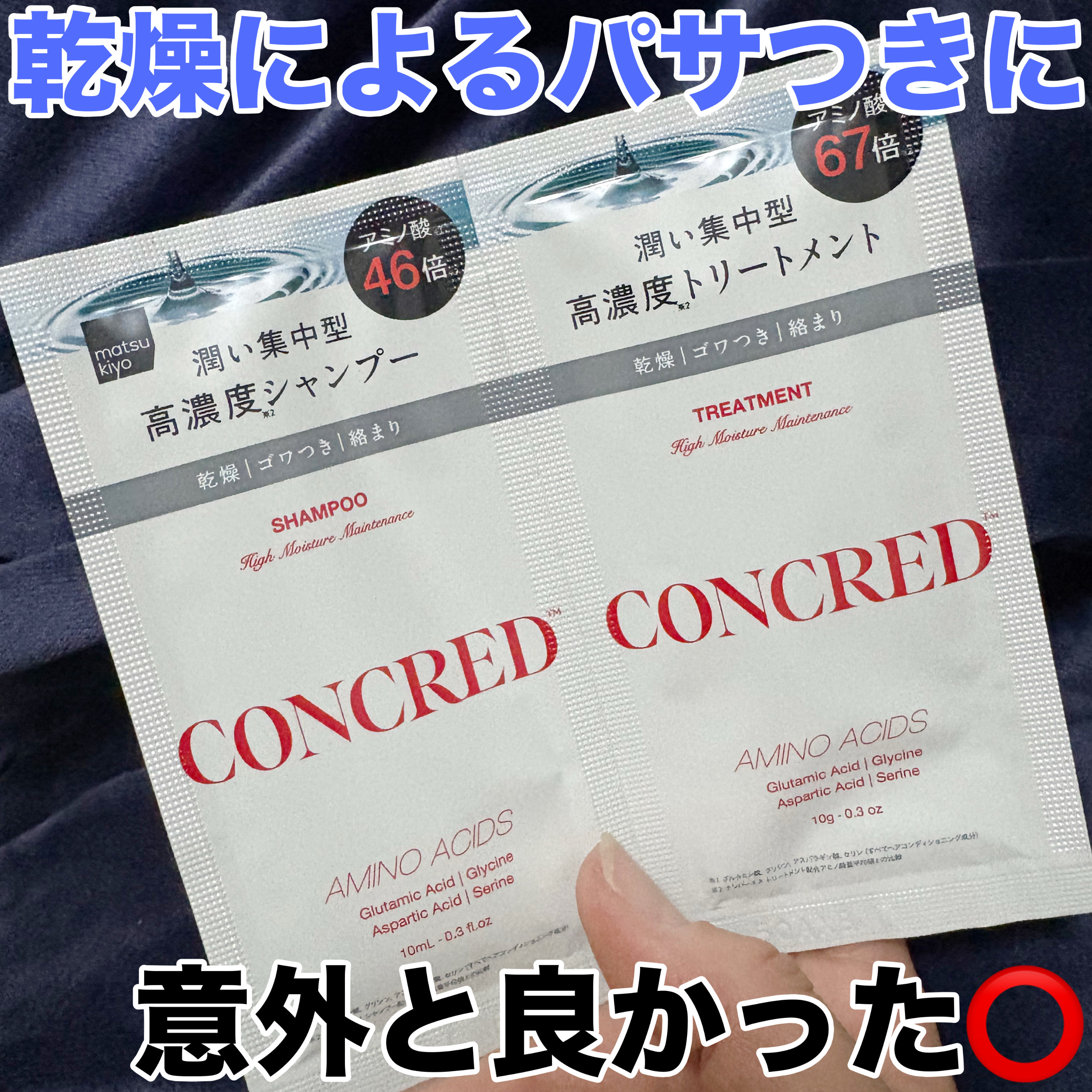 マツキヨにて気になるシャンプーを入手しました!その名も…『matsukiyoCONCRED』!!アミノ酸がいっぱい入っててなんか凄そう!ということで、今回はトライアル版を購入。【感想】・甘い香りがお風呂上がりも続く・シャンプーは少しキシむ感じ...