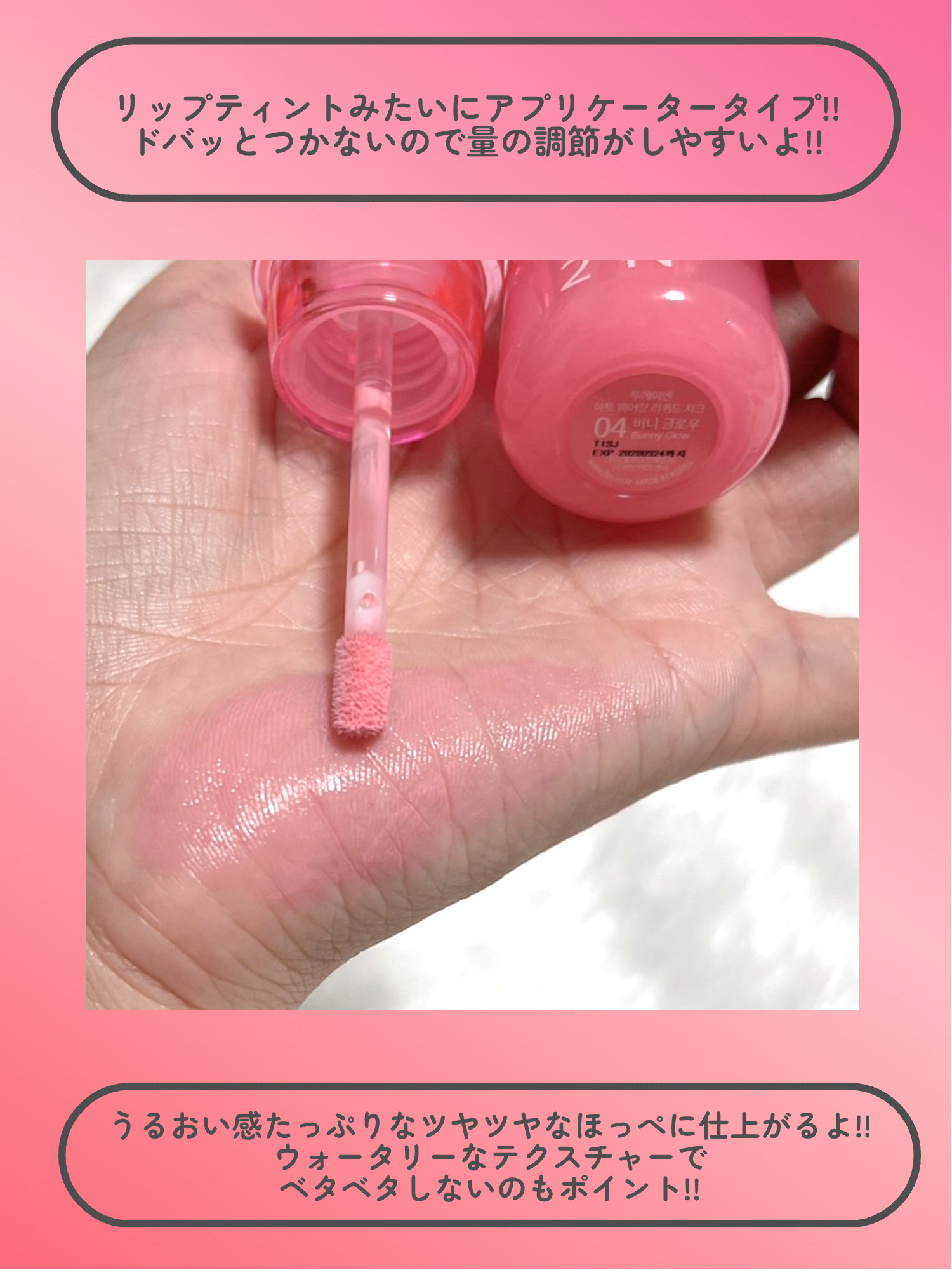 | ジュワッと肌の内側から水分が滲み出るような 水光感で潤ったツヤ肌に魅せてくれるリキッドチーク✨ | 詳細を見る | ||
