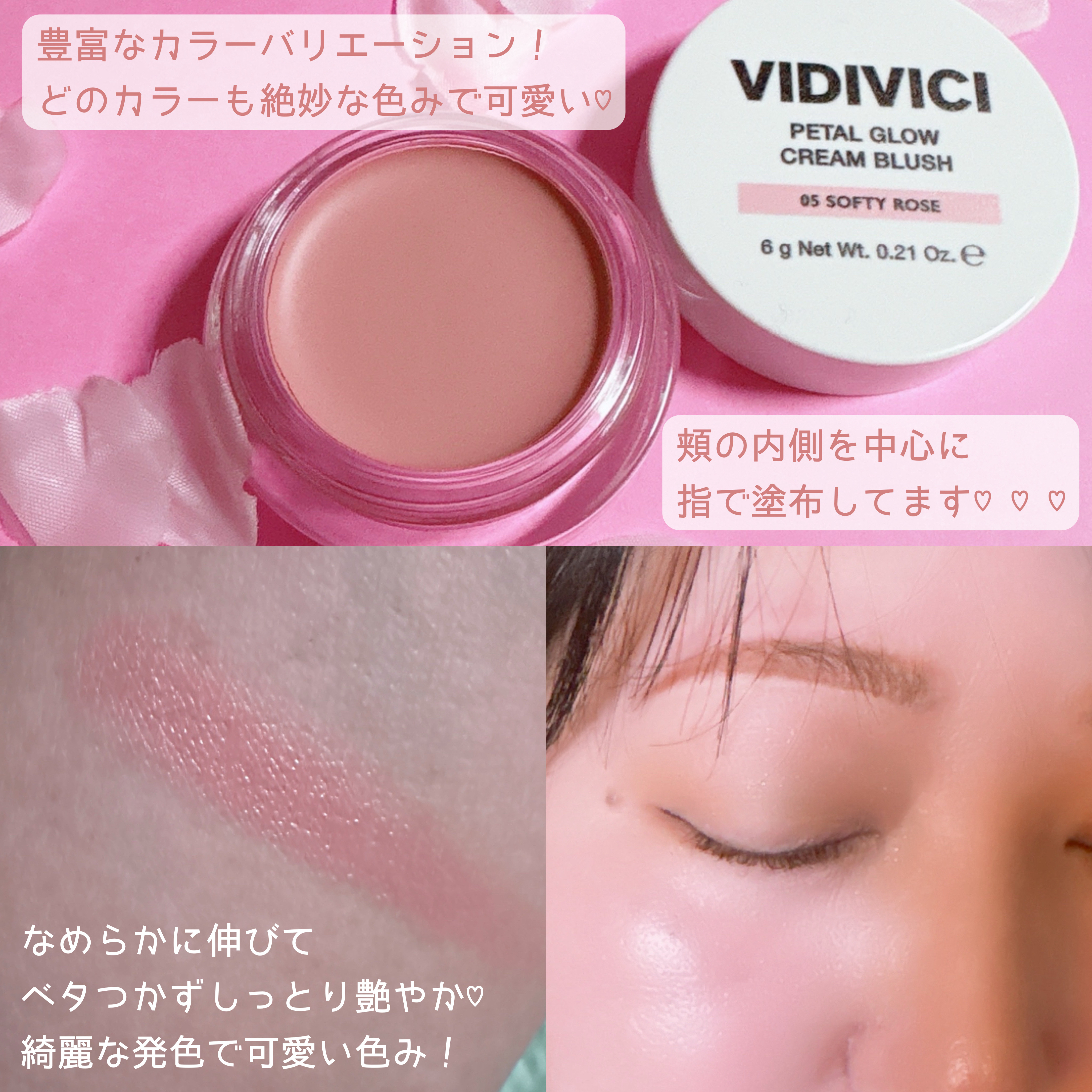 ..#PRVIDIVICIPETALGLOWCREAMBLUSH-05softyrose-オリヤンで1位になったチーク⸜🌷︎⸝ベースメイクを崩さない軽いオイルテクスチャー植物オイル3種・トコフェロール・D-パンテノールとスキンケア成分配合で...