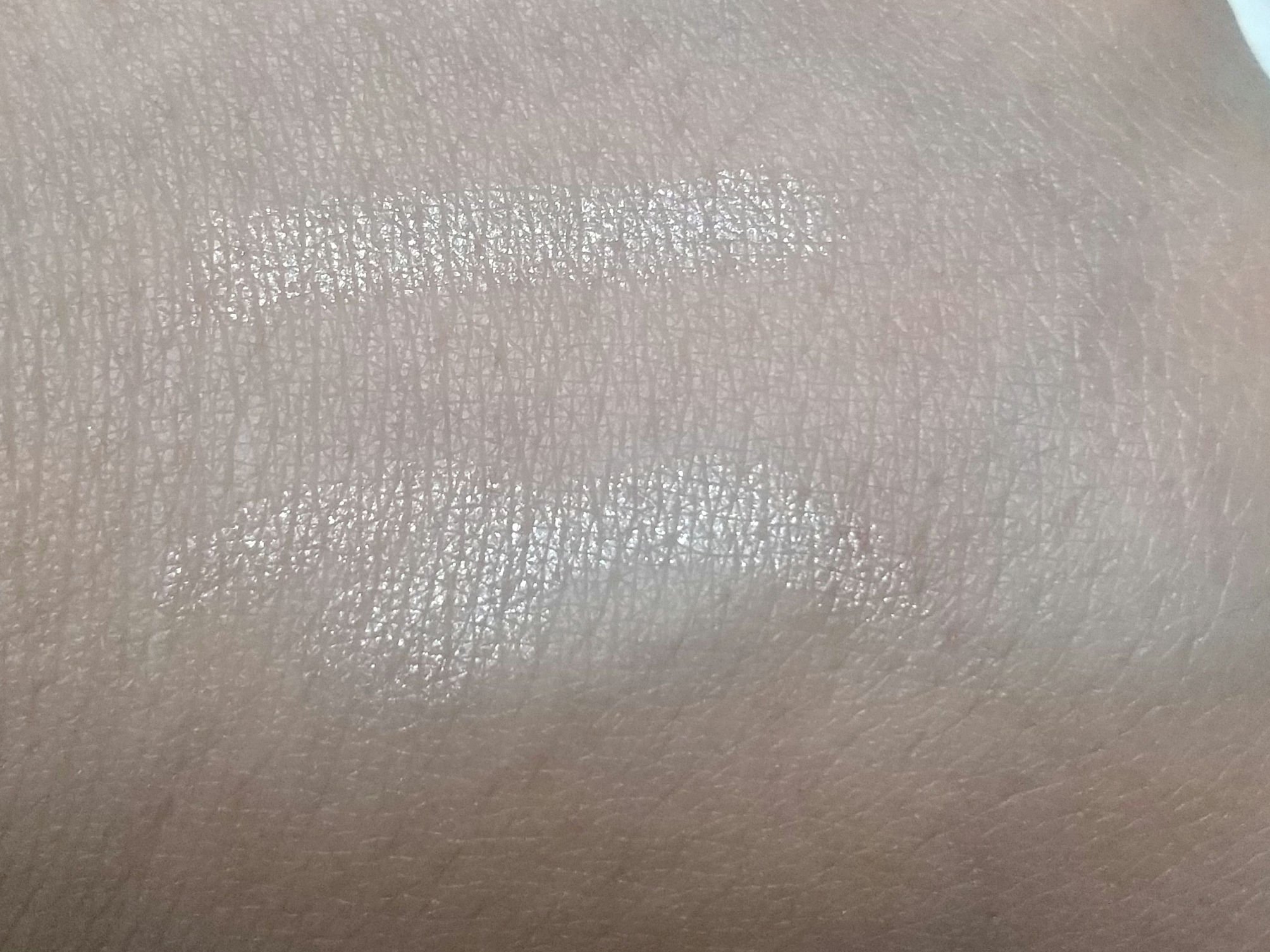 左上、左下、真ん中上、真ん中下、右上、右下という順番でスウォッチしてみました。 出してみると商品の写真より肌にのせたほうがくすみが出るかな✨という印象です😌 伸ばしやすくて指でも筆でもつけやすいです☺️💕 とっても可愛いカラーなのでオススメです💠