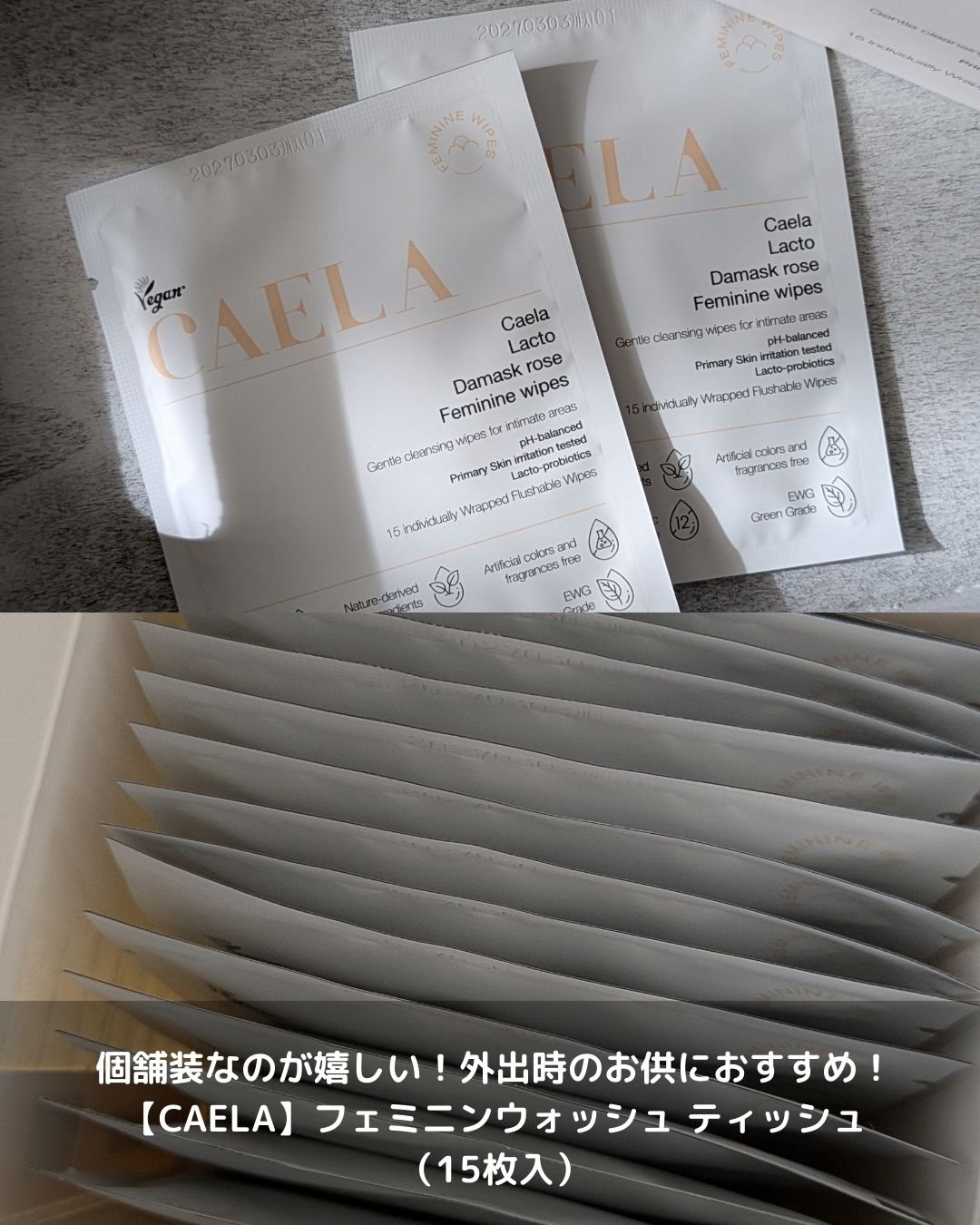 【CAELA】フェミニンウォッシュジェルフェミニンウォッシュティッシュ試してみました。デリケートゾーンはアルカリ性に傾きやすく乾燥しがち。専用のpH5.5の弱酸性ソープがあると優しく洗える。ニオイ対策、乾燥対策に。生理前後にも。朝のシャワーな...