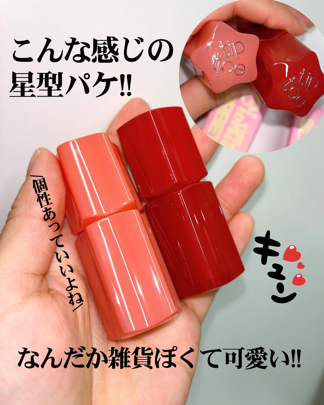 - <101 トゥシューズ S2> 精製水、トリメチルシロキシシリケート、ジイソステアリルマレイン酸、ジフェニルシロキシフェニルトリメチコン、イソノニルイソノナノエート、グリセリン、セチルPEG/PPG-10/1ジメチコン、ブチレングリコール、1,2-ヘキサンジオール、オクチルドデカノール、ペンチレングリコール、ポリソルベート60、セテアレス-20、PEG-30ジポリヒドロキシステアレート、オクチルドデシルキシロシド、ヒドロキシエチルアクリレート/アクリロイルジメチルタウリンNaコポリマー、酸化チタン、スクワラン、ポリアクリレートクロスポリマー-6、エチルヘキシルグリセリン、香料、黄5、赤227、黄4、水酸化アルミニウム、ソルビタンイソステアレート、アモニウムポリアクリレート、フェノキシエタノール、青1、ペンタエリスリチルテトラ-t-ブチルヒドロキシヒドロシンナメート、トコフェロール、DNA-Na、ジメチルシラノールヒアルロン酸、加水分解ヒアルロン酸、加水分解ヒアルロン酸Na、ヒアルロン酸Na、ヒアルロン酸、ヒアルロン酸K、ヒアルロン酸Naクロスポリマー、ヒドロキシプロピルトリモニウムヒアルロン酸、ジメチルシラノールヒアルロン酸Na、アセチル化ヒアルロン酸Na <102 ピンクシュガー> 精製水、トリメチルシロキシシリケート、ジイソステアリルマレート、ジフェニルシロキシフェニルトリメチコン、イソノニルイソノナノエート、グリセリン、セチルPEG/PPG-10/1ジメチコン、ブチレングリコール、1,2-ヘキサンジオール、オクチルドデカノール、ペンチレングリコール、ポリソルベート60、セテアレス-20、酸化チタン、PEG-30ジポリヒドロキシステアレート、オクチルドデシルキシロシド、ヒドロキシエチルアクリレート/アクリロイルジメチルタウリンNaコポリマー、スクワラン、ポリアクリレートクロスポリマー-6、エチルヘキシルグリセリン、香料、赤227、黄4、水酸化アルミニウム、アモニウムポリアクリレート、ソルビタンイソステアレート、フェノキシエタノール、青1、ペンタエリスリチルテトラ-t-ブチルヒドロキシヒドロシンナメート、トコフェロール、DNA-Na、ジメチルシラノールヒアルロン酸、加水分解ヒアルロン酸、加水分解ヒアルロン酸Na、ヒアルロン酸Na、ヒアルロン酸、ヒアルロン酸K、ヒアルロン酸Naクロスポリマー、ヒドロキシプロピルトリモニウムヒアルロン酸、ジメチルシラノールヒアルロン酸Na、アセチル化ヒアルロン酸Na <103 ピーチパンチ> 精製水、トリメチルシロキシシリケート、ジイソステアリルマレート、ジフェニルシロキシフェニルトリメチコン、イソノニルイソノナノエート、グリセリン、セチルPEG/PPG-10/1ジメチコン、ブチレングリコール、1,2-ヘキサンジオール、オクチルドデカノール、ペンチレングリコール、ポリソルベート60、セテアレス-20、酸化チタン、PEG-30ジポリヒドロキシステアレート、オクチルドデシルキシロシド、ヒドロキシエチルアクリレート/アクリロイルジメチルタウリンNaコポリマー、スクワラン、ポリアクリレートクロスポリマー-6、エチルヘキシルグリセリン、黄5、香料、赤227、水酸化アルミニウム、アモニウムポリアクリレート、ソルビタンイソステアレート、フェノキシエタノール、青1、ペンタエリスリチルテトラ-t-ブチルヒドロキシヒドロシンナメート、トコフェロール、DNA-Na、ジメチルシラノールヒアルロン酸、加水分解ヒアルロン酸、加水分解ヒアルロン酸Na、ヒアルロン酸Na、ヒアルロン酸、ヒアルロン酸K、ヒアルロン酸Naクロスポリマー、ヒドロキシプロピルトリモニウムヒアルロン酸、ジメチルシラノールヒアルロン酸Na、アセチル化ヒアルロン酸Na <104 グレープポップ> 精製水、トリメチルシロキシシリケート、ジイソステアリルマレート、ジフェニルシロキシフェニルトリメチコン、イソノニルイソノナノエート、グリセリン、セチルPEG/PPG-10/1ジメチコン、ブチレングリコール、1,2-ヘキサンジオール、オクチルドデカノール、ペンチレングリコール、ポリソルベート60、セテアレス-20、酸化チタン、PEG-30ジポリヒドロキシステアレート、オクチルドデシルキシロシド、ヒドロキシエチルアクリレート/アクリロイルジメチルタウリンNaコポリマー、スクワラン、ポリアクリレートクロスポリマー-6、エチルヘキシルグリセリン、赤227、香料、黄4、水酸化アルミニウム、アモニウムポリアクリレート、ソルビタンイソステアレート、フェノキシエタノール、青1、ペンタエリスリチルテトラ-t-ブチルヒドロキシヒドロシンナメート、トコフェロール、DNA-Na、ジメチルシラノールヒアルロン酸、加水分解ヒアルロン酸、加水分解ヒアルロン酸Na、ヒアルロン酸Na、ヒアルロン酸、ヒアルロン酸K、ヒアルロン酸Naクロスポリマー、ヒドロキシプロピルトリモニウムヒアルロン酸、ジメチルシラノールヒアルロン酸Na、アセチル化ヒアルロン酸Na <105 スイカシュガー> 精製水、トリメチルシロキシシリケート、ジイソステアリルマレート、ジフェニル