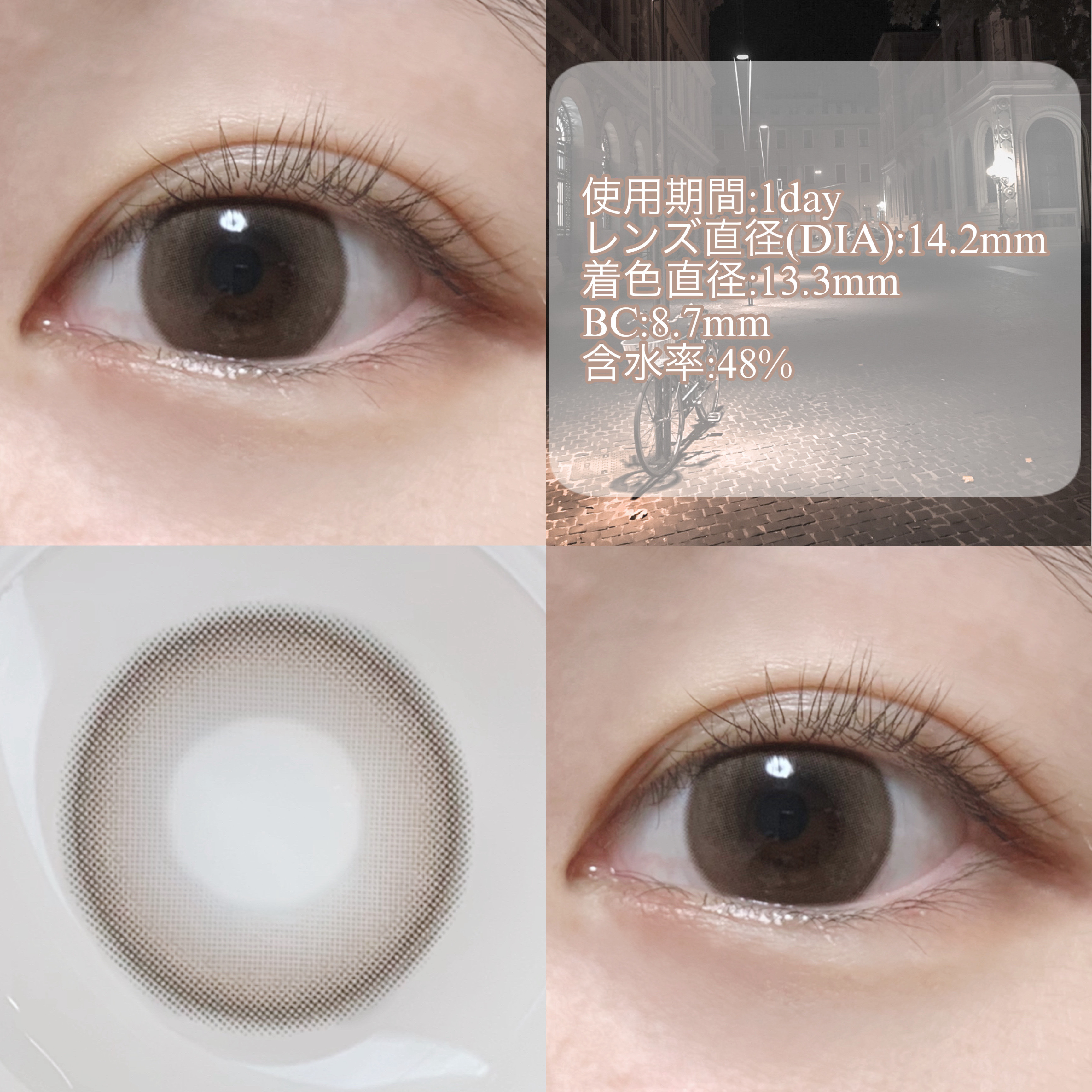 しっかり盛れるカラコン🫶🏻 Moodnight 1day 2カラーレビュー❤️❤️ 13.3mmの着色直径で、ナチュラルに盛れるサイズ感💓 落ち着いたアッシュ系のカラコンで、大人っぽい目元を演出してくれる🥨