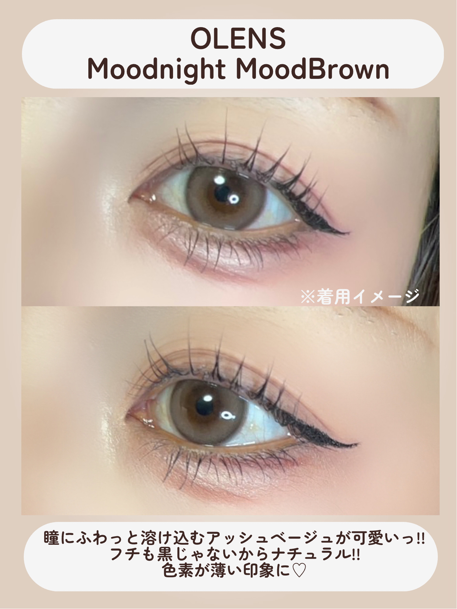 OLENS大人可愛いアッシュ系カラコン3選🤍-----꒰♡꒱-----🤍MoodnightMoodBrownムードナイトムードブラウン1day(1箱10枚入り)DIA14.2mm着色直径:13.3mm含水率 48%グラデーション中太フチと、瞳...