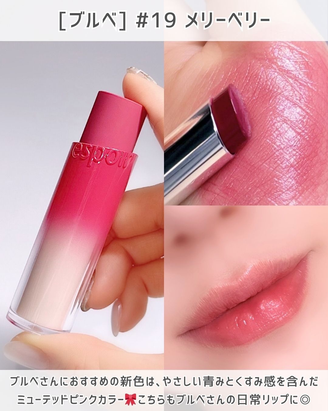 冬メイクにぴったりなエスポアのMerryBerrySeriesをフルリップとグラデーションリップでそれぞれ塗った時の違いをまとめてみた🍒✨透け感のあるツヤとベリーカラーがとにかく可愛くて、クリスマスの雰囲気にもすごく合うこの3色♡⸻🍒■Ber...