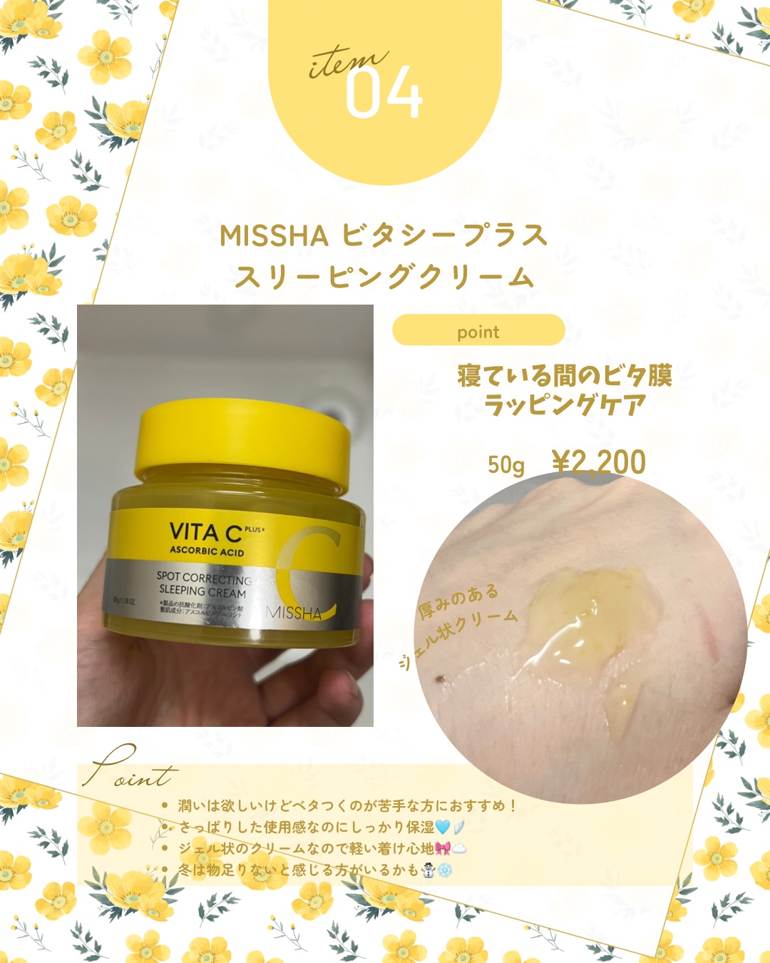 MISSHA ミシャ ビタシープラス* スリーピングクリーム | 2,200円 |
